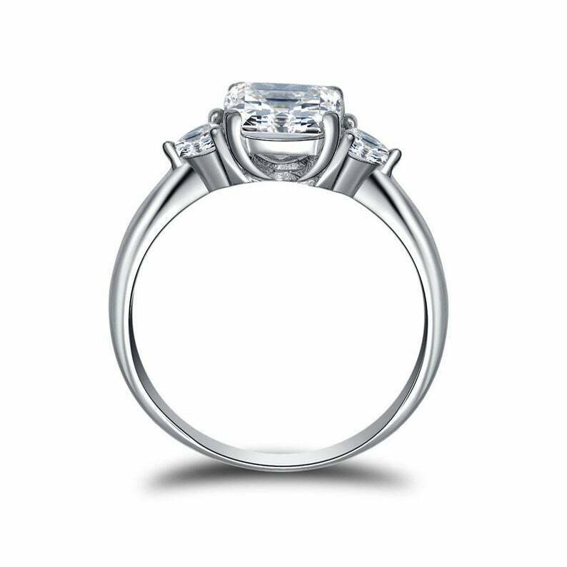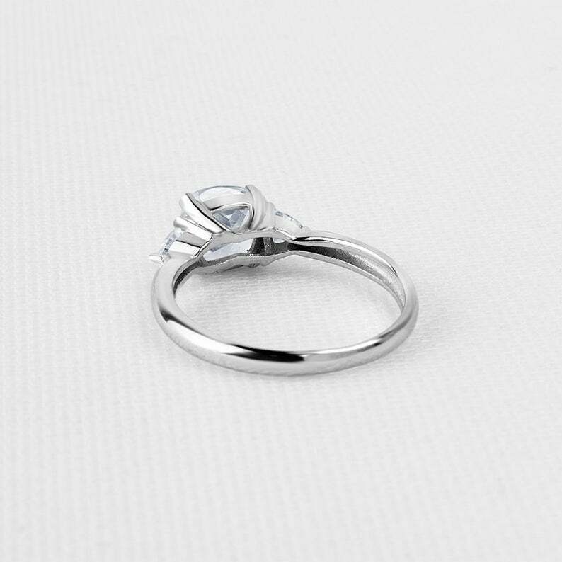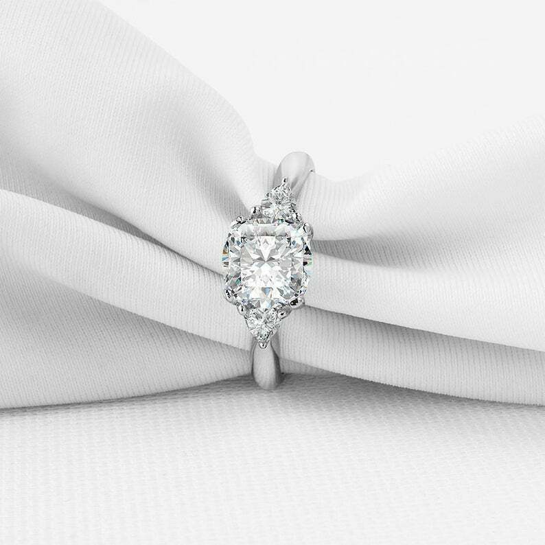 2ct Cushion Cut Diamond Engagement Ring Trillion Accent Trilogy 14k White Gold Over
