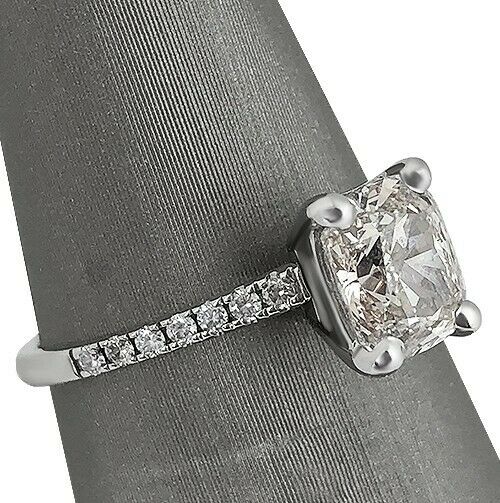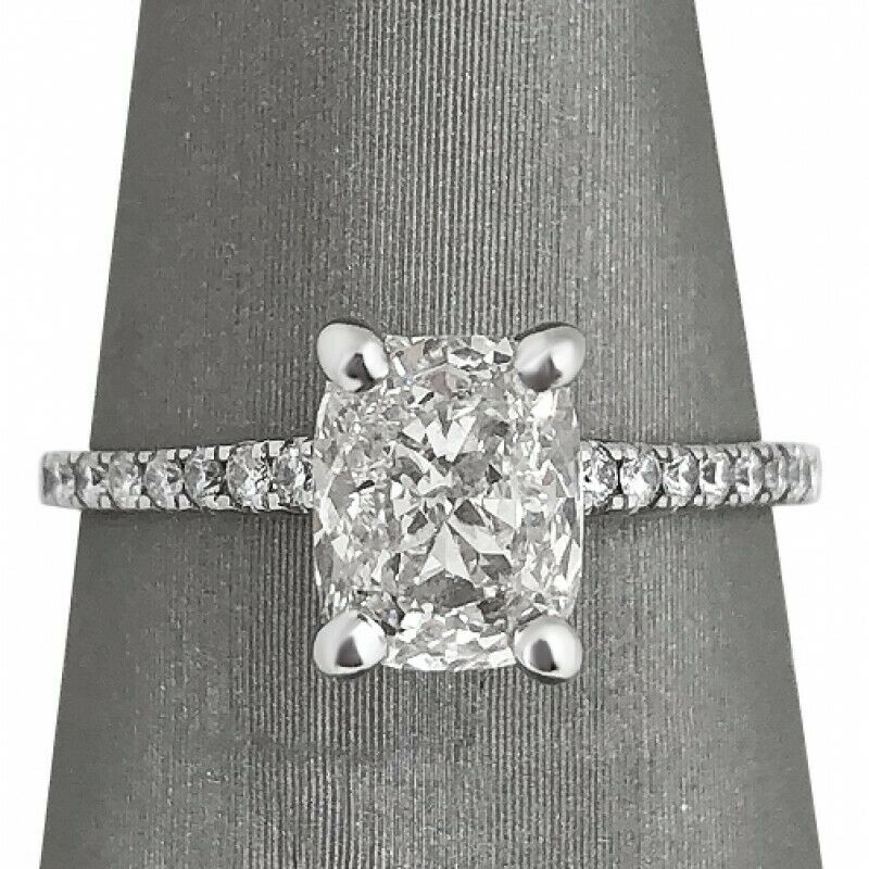 2Ct Elongated Cushion Cut Diamond Solitaire with Accent Ring 14K White Gold Over