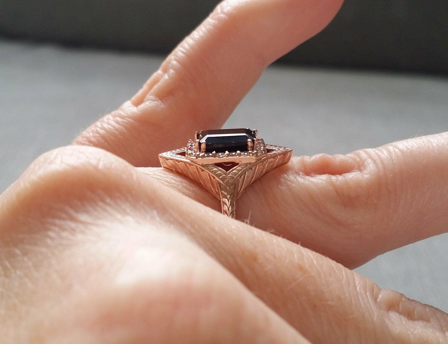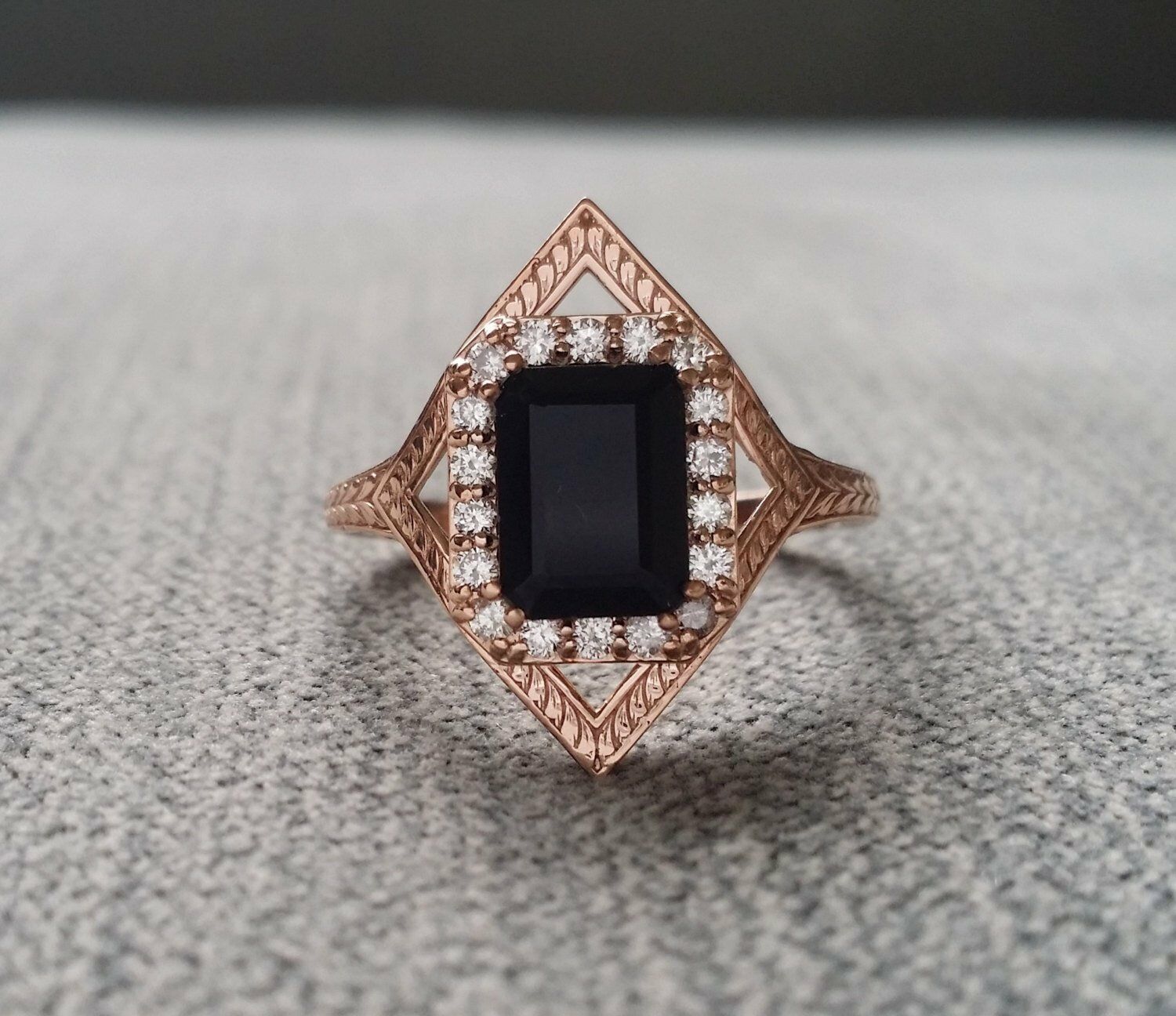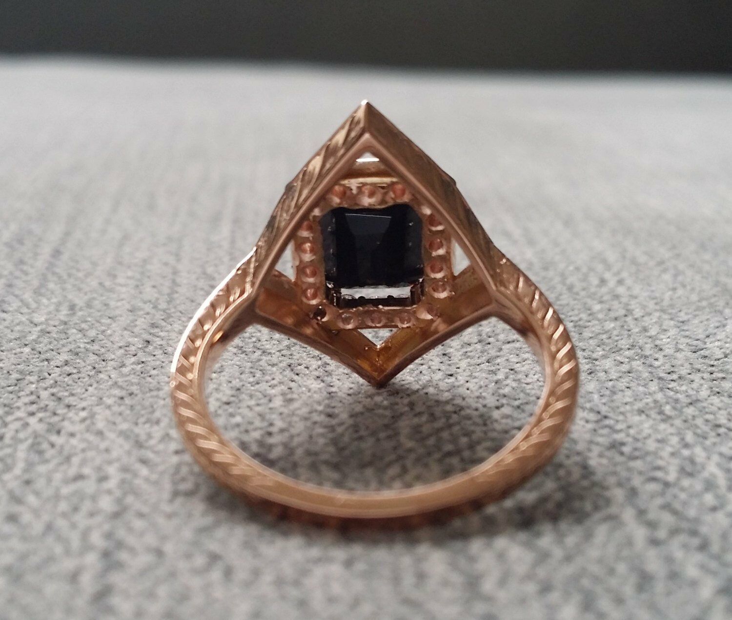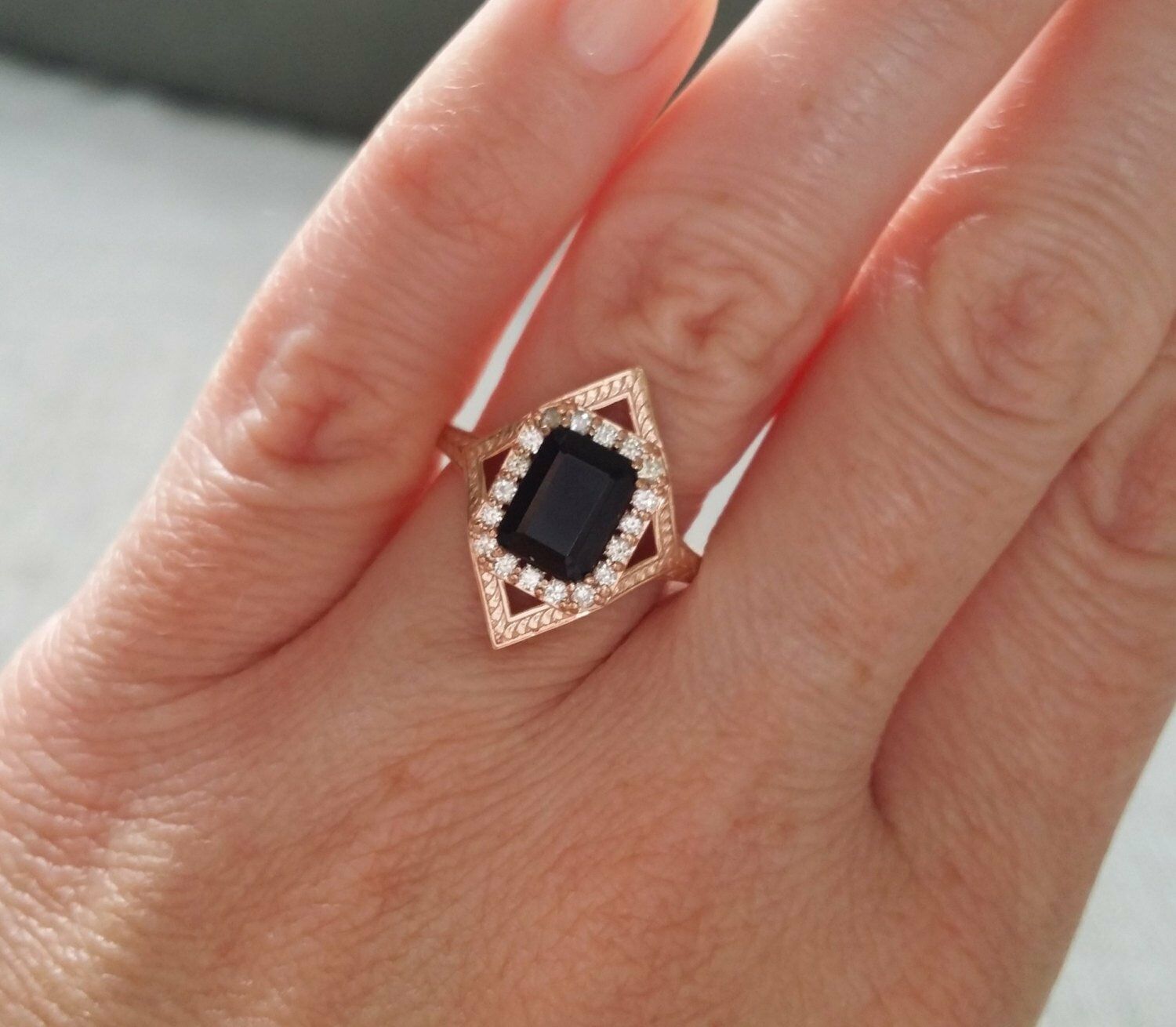 2Ct Emerald Cut Black Diamond Halo Vintage Engagement Ring 14K Rose Gold Finish