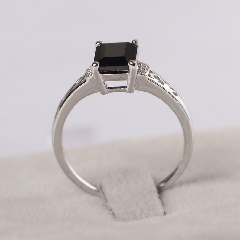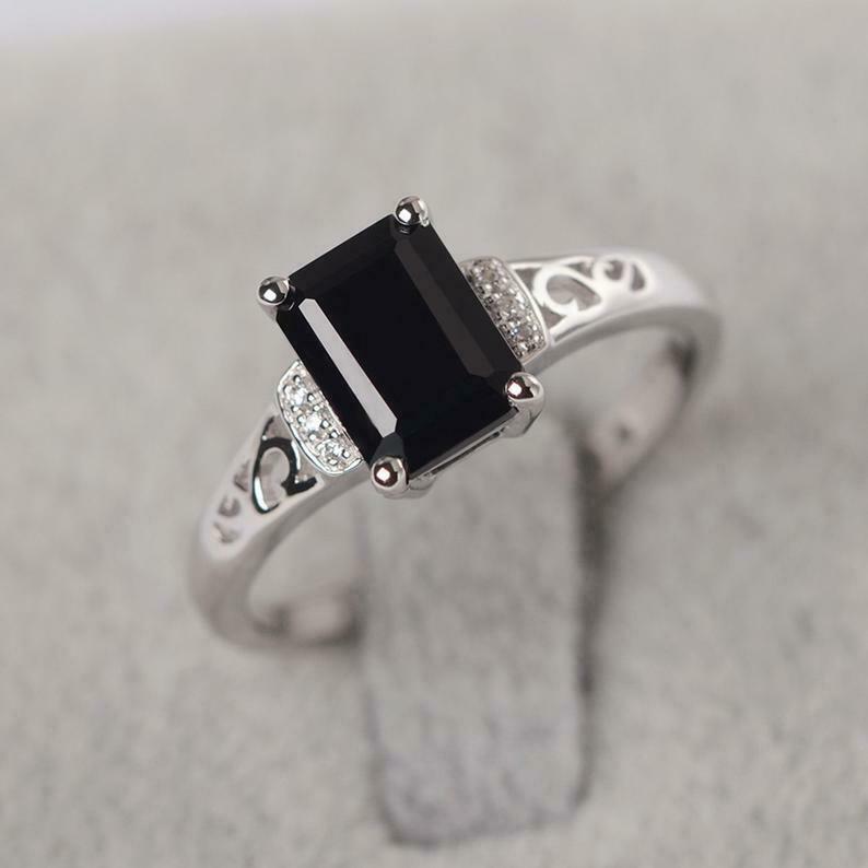 2ct Emerald Cut Black Diamond Solitaire Filigree Accent Ring 14k White Gold Over