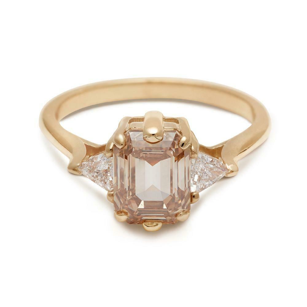2ct Emerald Cut Champagne Diamond Engagement Ring 14k YellowGold Over Bridal Set