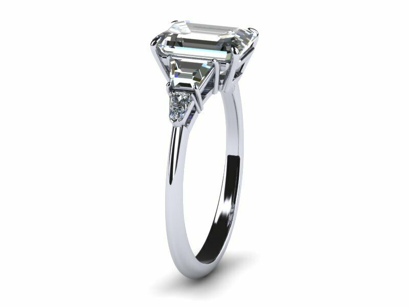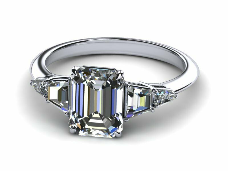 2ct Emerald Cut Diamond 5 Stone Solitaire Engagement Ring 14k White Gold Finish