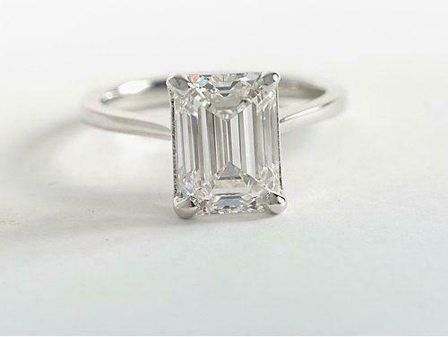 2Ct Emerald Cut Diamond Classic Solitaire Engagement Ring 18K White Gold Finish