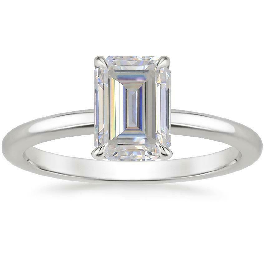 2ct Emerald Cut Diamond Engagement Ring 14k White Gold Finish Classic Solitaire