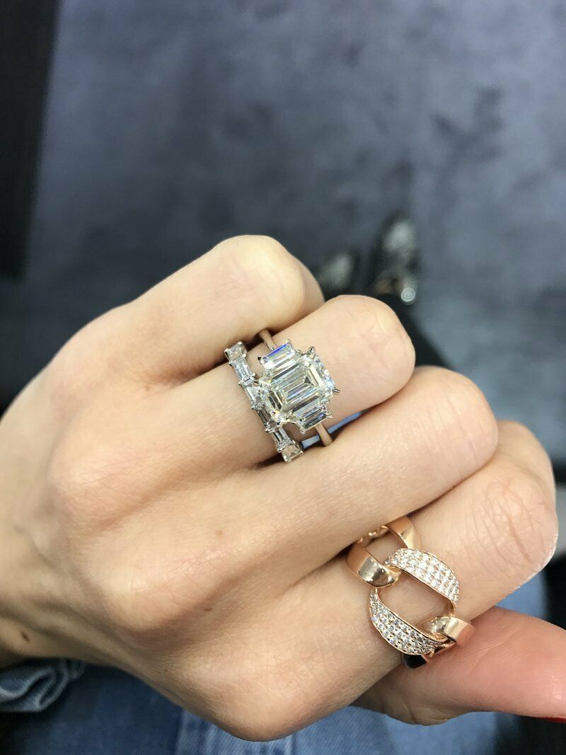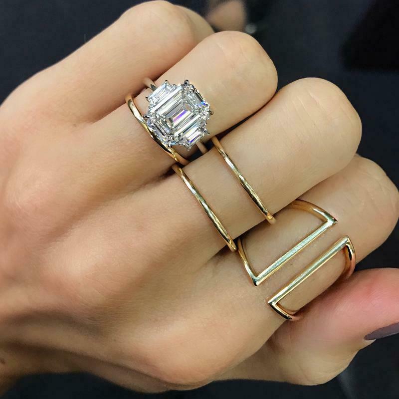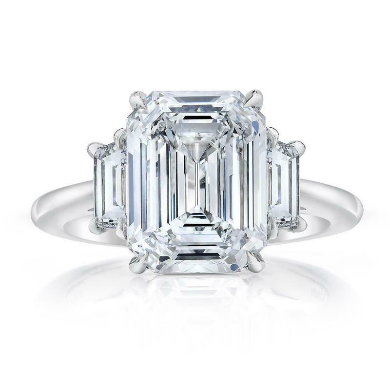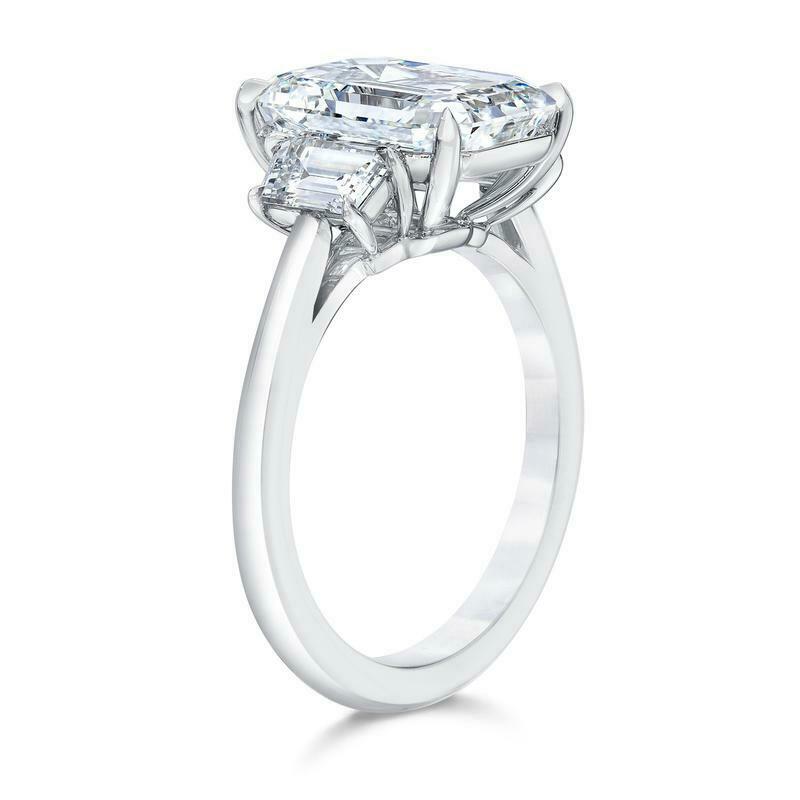 2ct Emerald Cut Diamond Engagement Ring 14k White Gold Finish Trilogy Solitaire