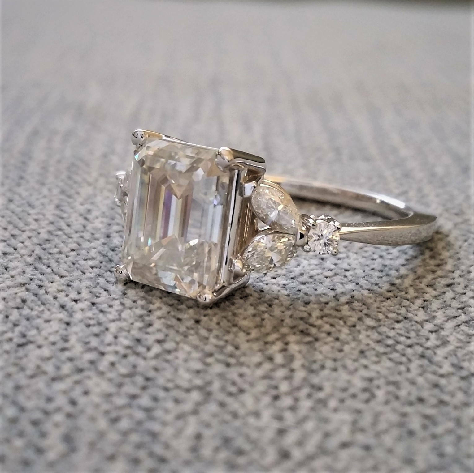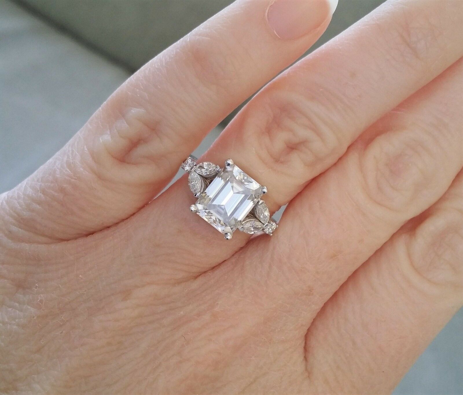 2Ct Emerald Cut Diamond Engagement Ring 14K White Gold Over Leaf Marquise Accent