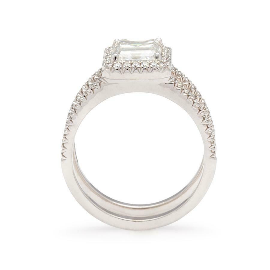 2ct Emerald Cut Diamond Engagement Ring 14k WhiteGold Finish Dual Open Band Halo