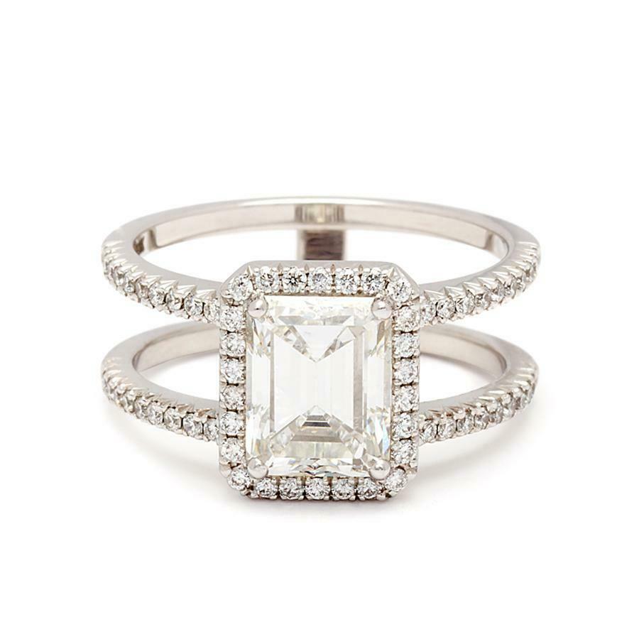 2ct Emerald Cut Diamond Engagement Ring 14k White Gold Finish Dual Open Band Halo