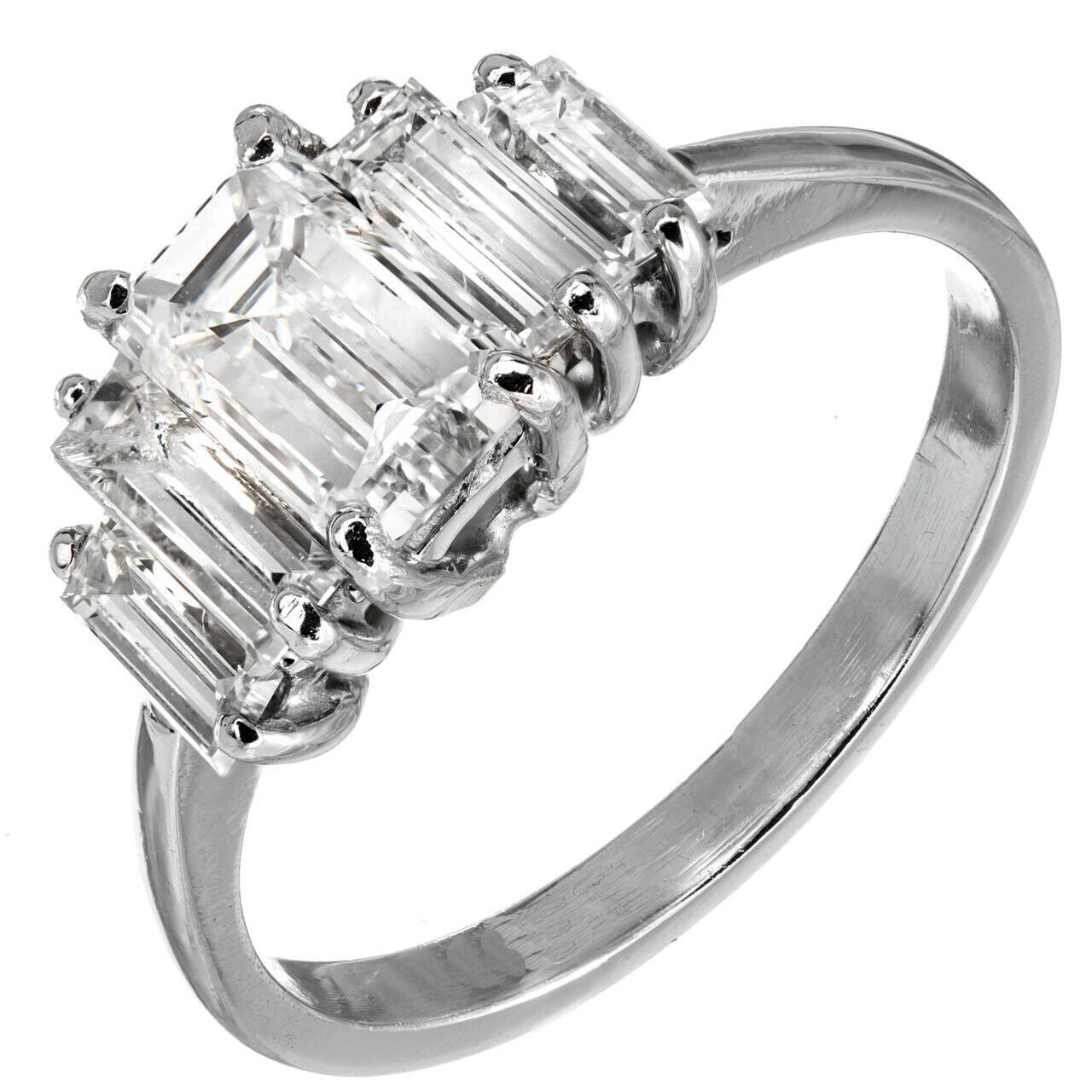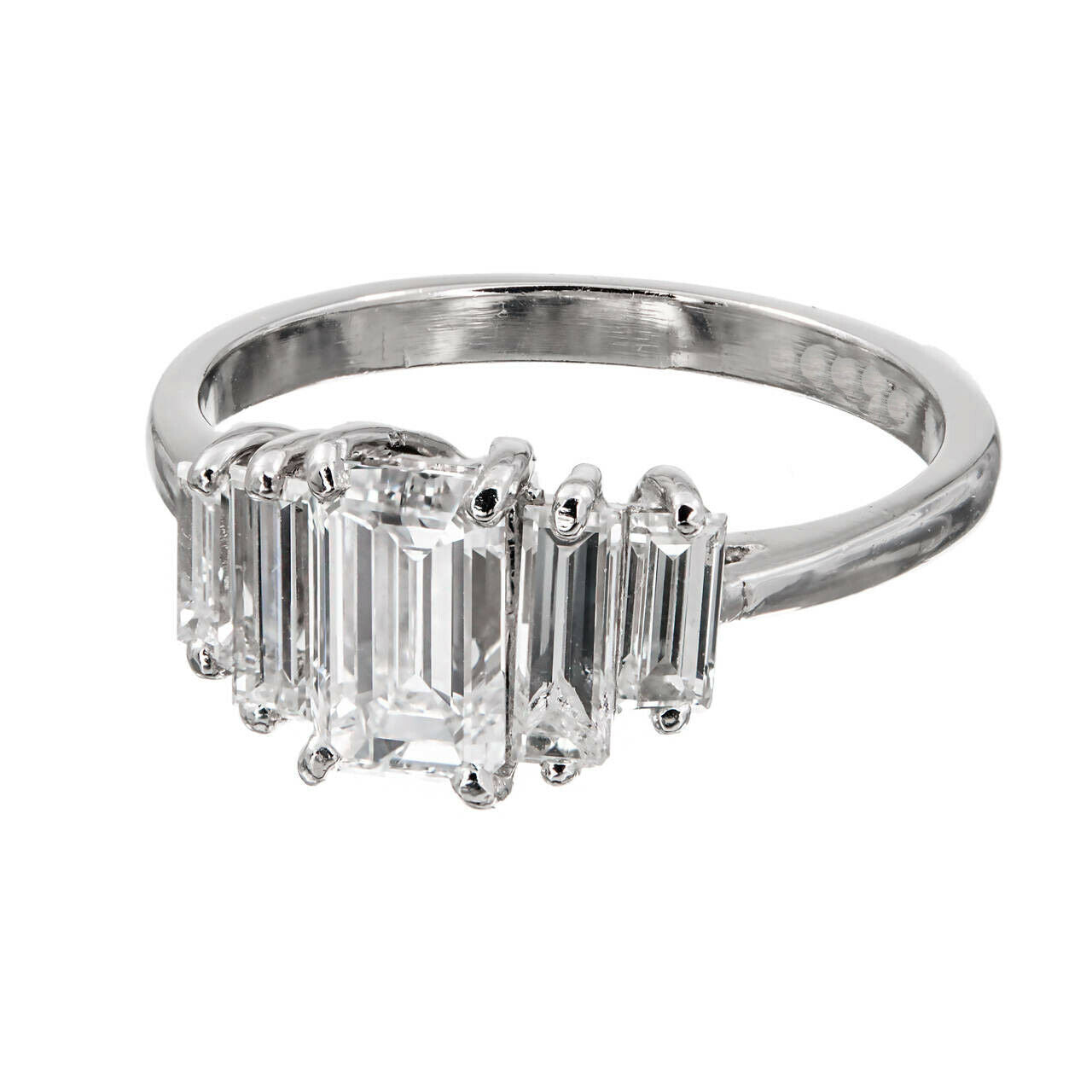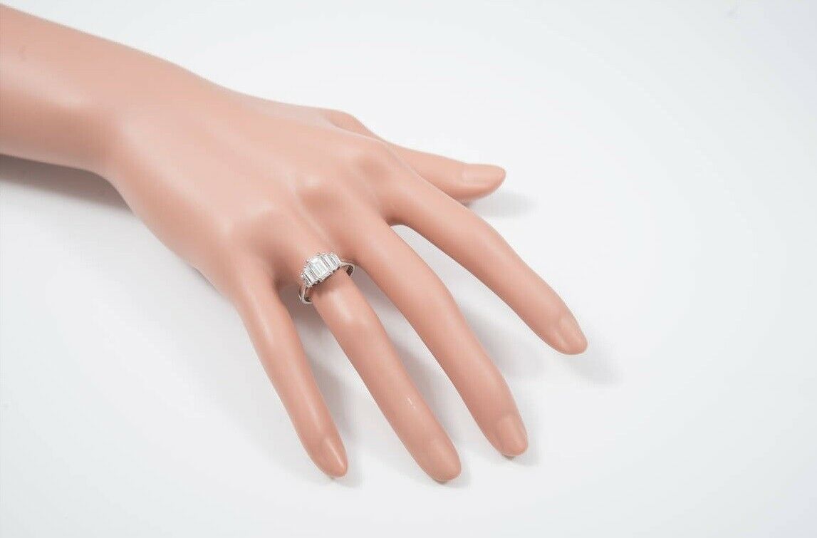 2ct Emerald Cut Diamond Engagement Ring 5 Stone Solitaire 14k White Gold Finish