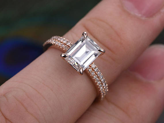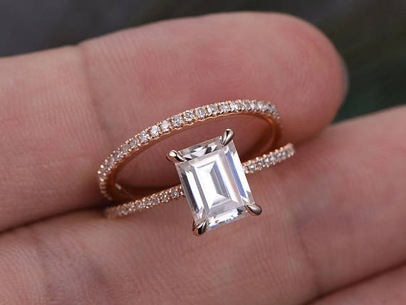 2ct Emerald Cut Diamond Engagement Ring Bridal Set with Accent 14k Rose Gold Over