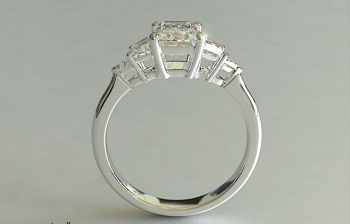 2ct Emerald Cut Diamond Engagement Ring Five Stone Solitaire 14k White Gold Over