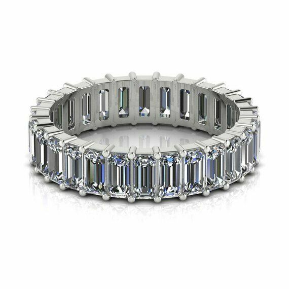 2ct Emerald Cut Diamond Eternity Stylish Wedding Ring Band 14k White Gold Finish