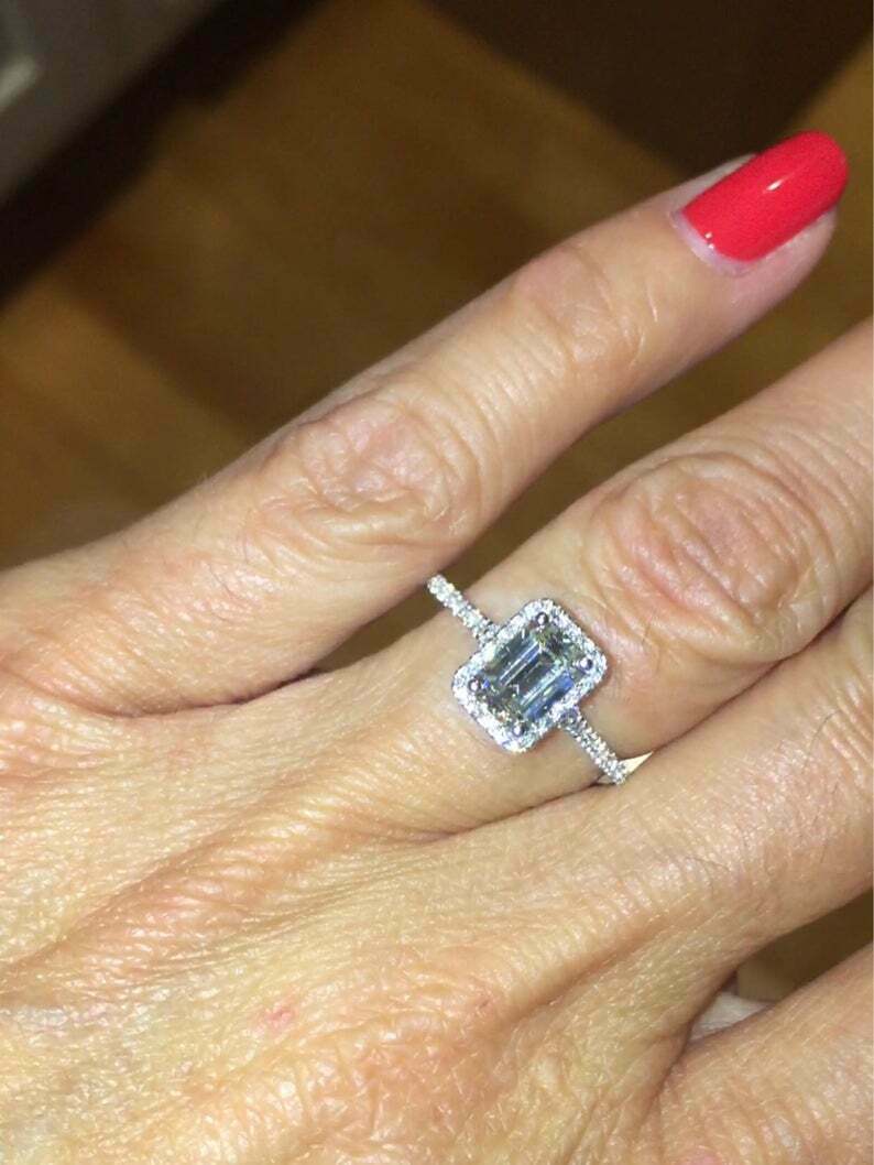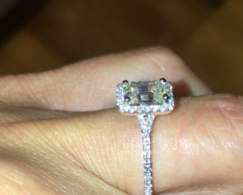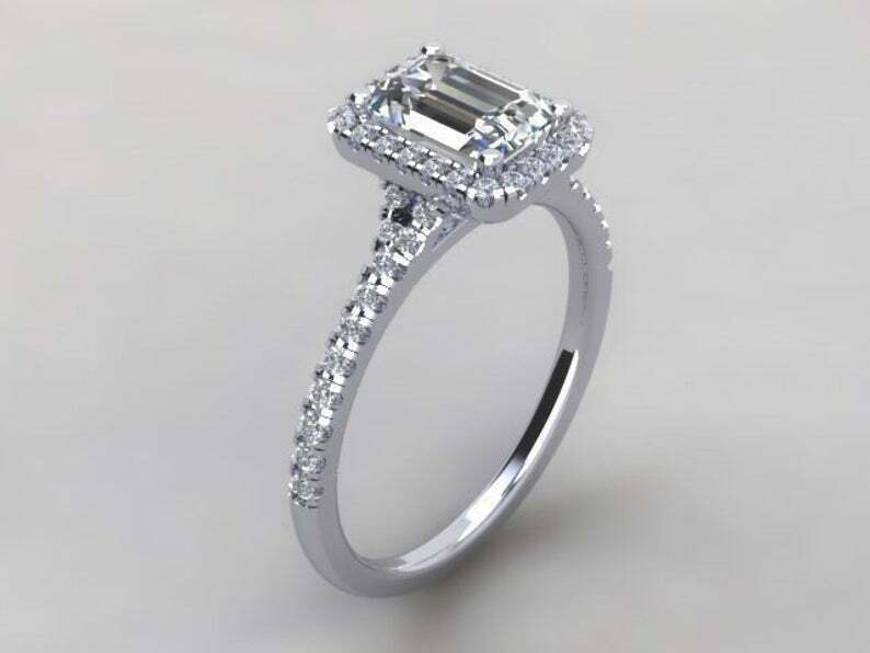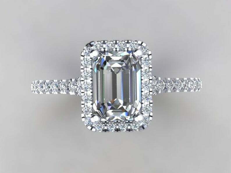 2ct Emerald Cut Diamond Round Accent Halo Engagement Ring 14k White Gold Finish