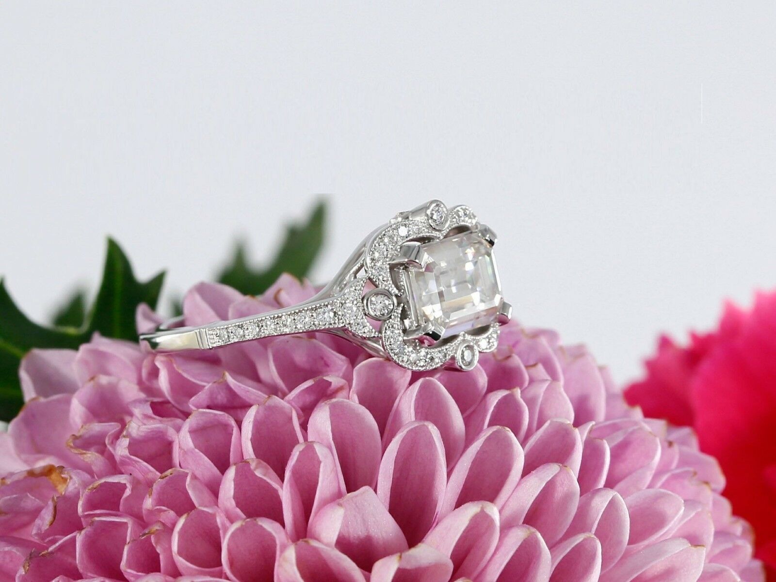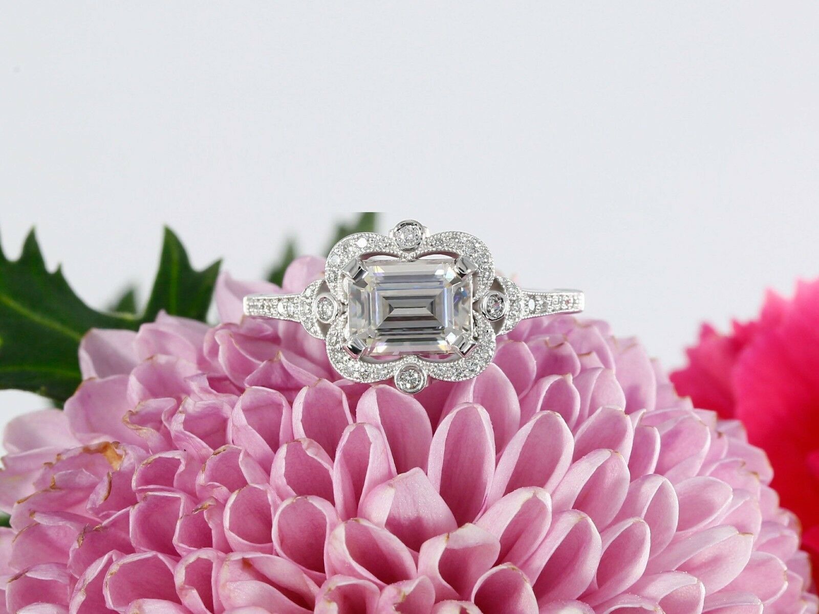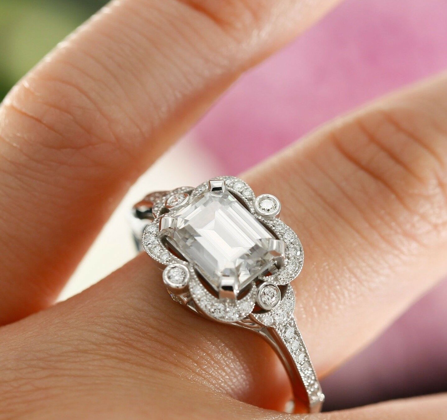 2ct Emerald Cut Diamond Vintage Halo Women Engagement Ring 14k White Gold Finish