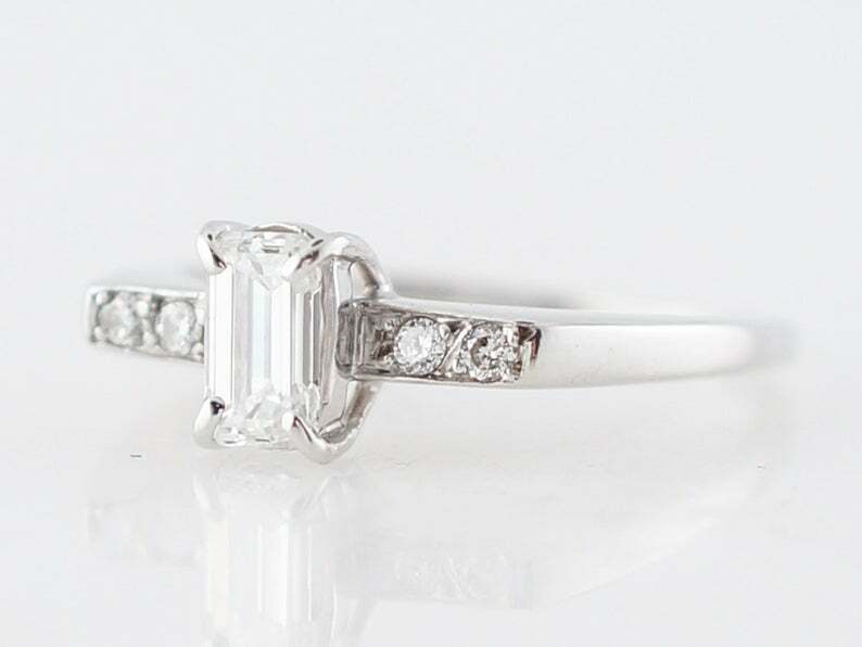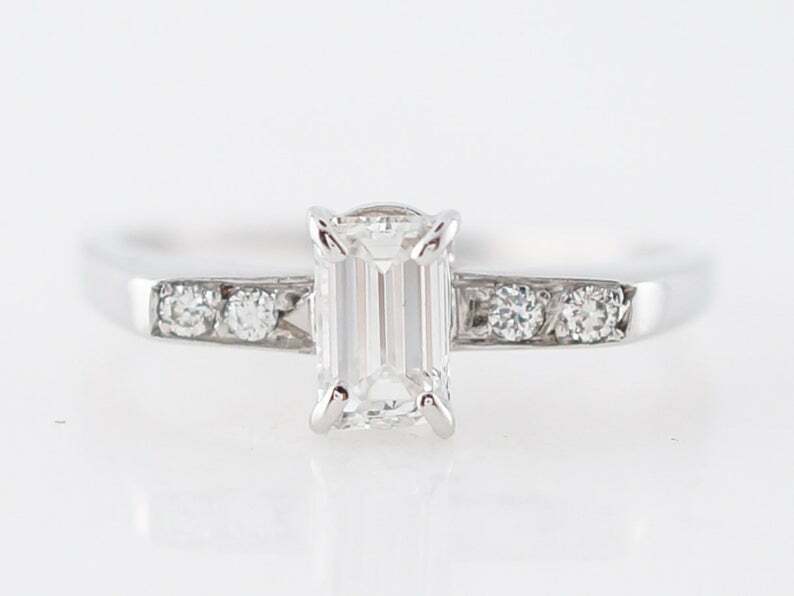 2ct Emerald Cut Diamond with Accent Solitaire Engagement Ring 14k White Gold Over