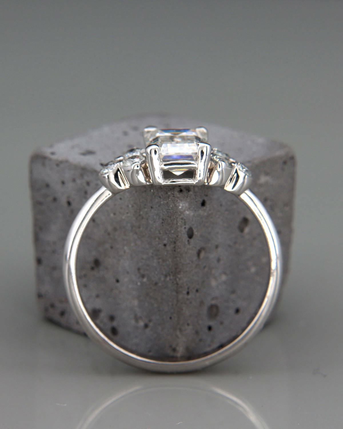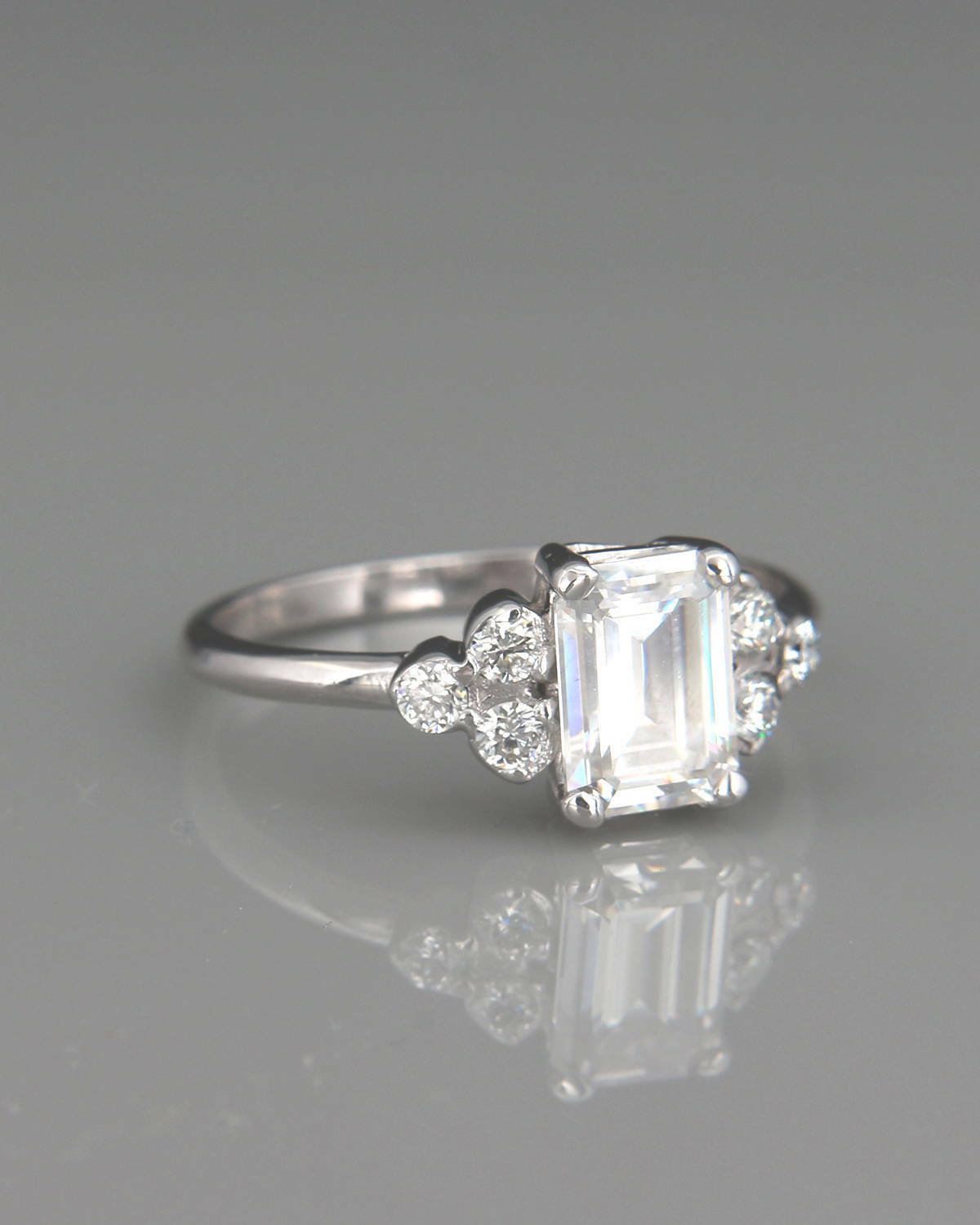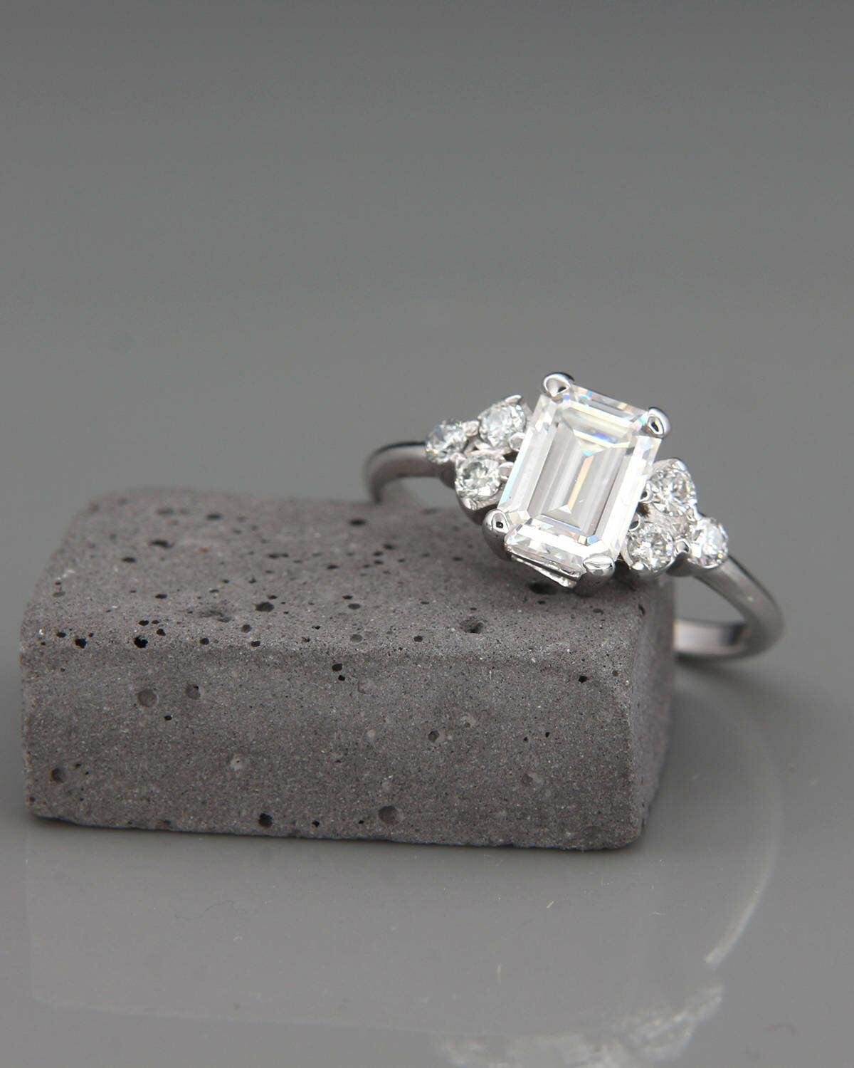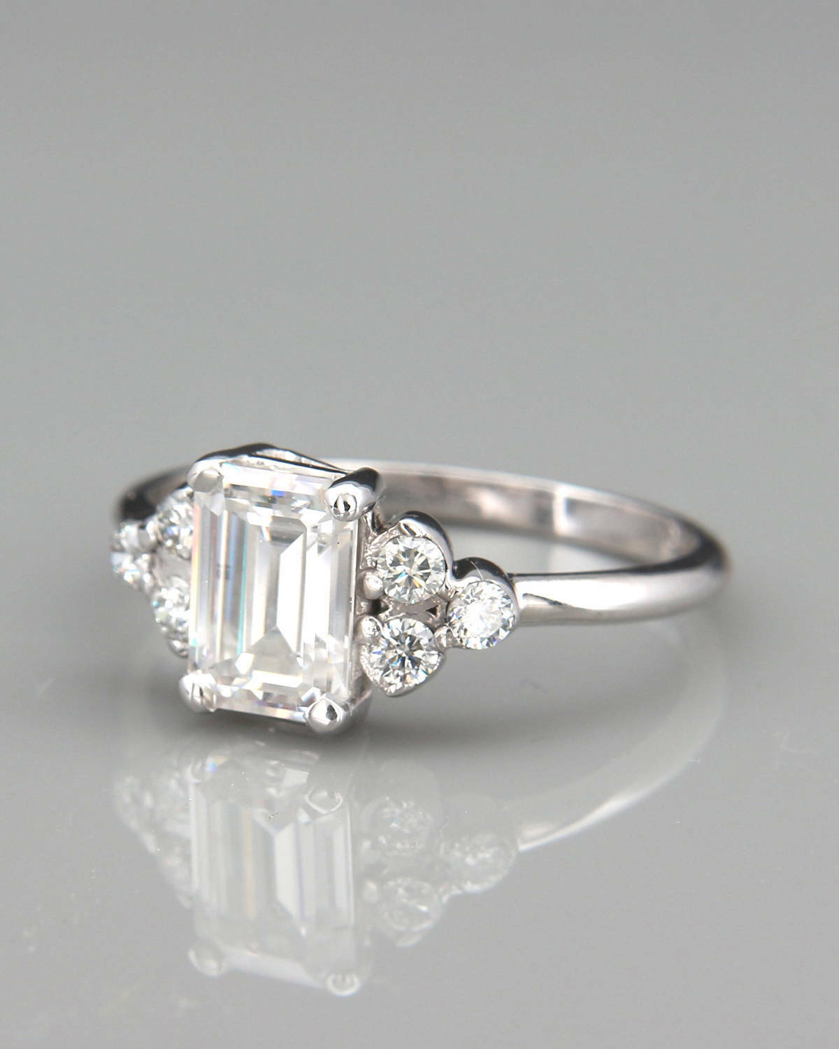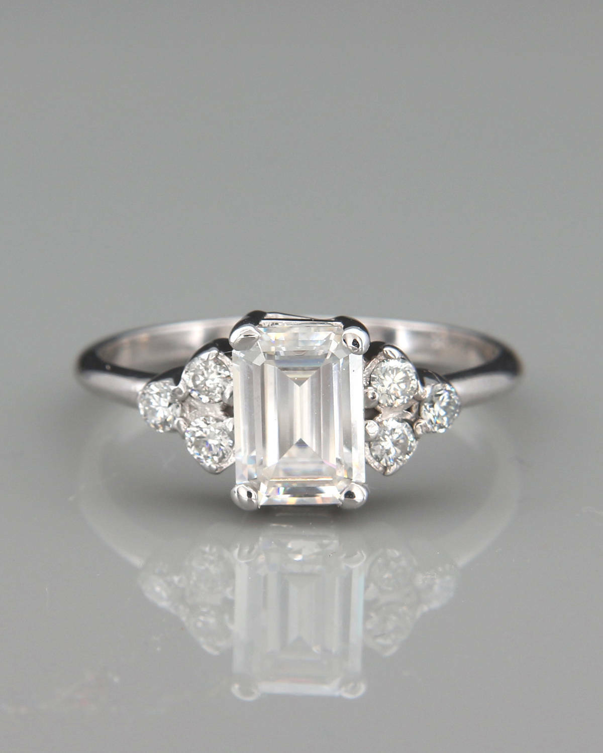 2Ct Emerald Cut VVS1 Diamond Engagement Ring 14K White Gold Finish Round Accents