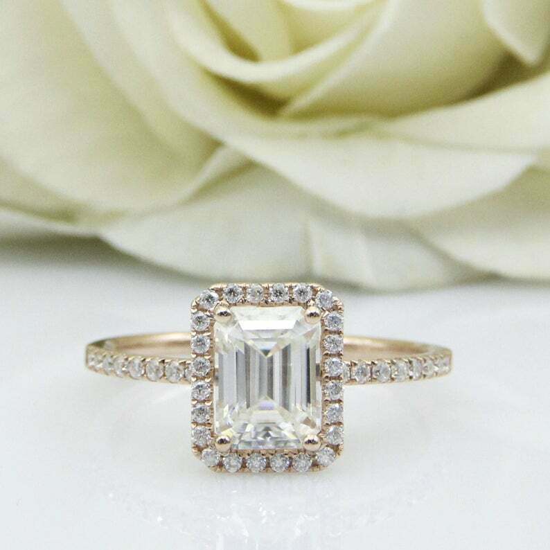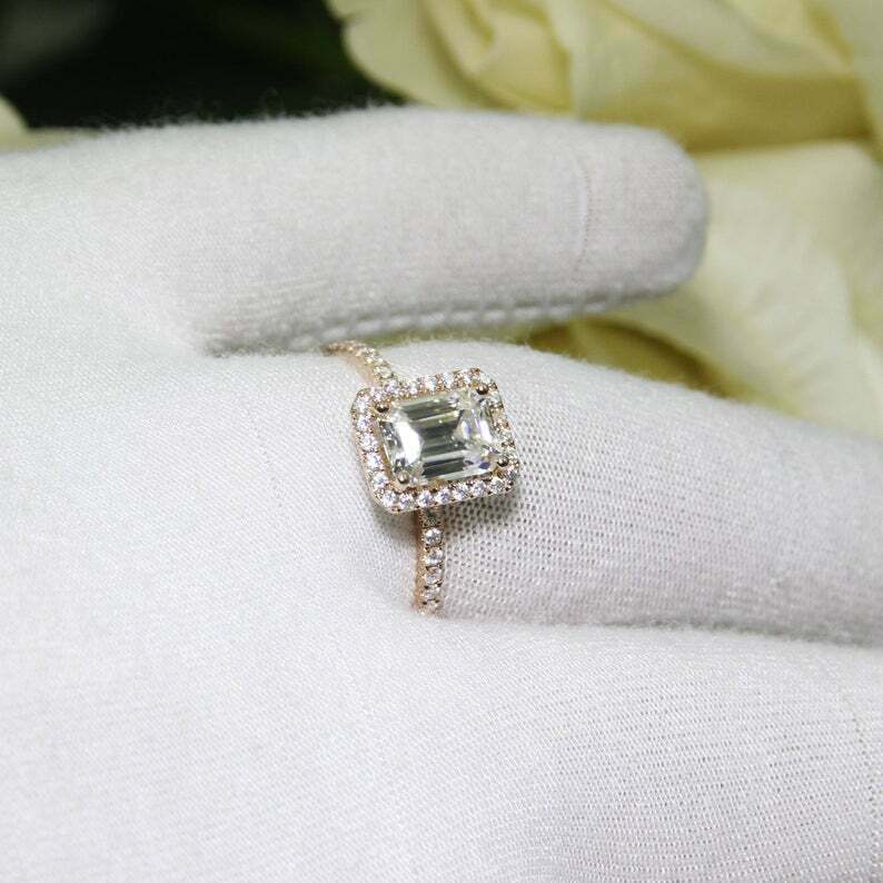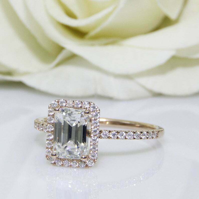 2ct Emerald Diamond Engagement Ring Halo Solitaire with Accent 14k RoseGold Over