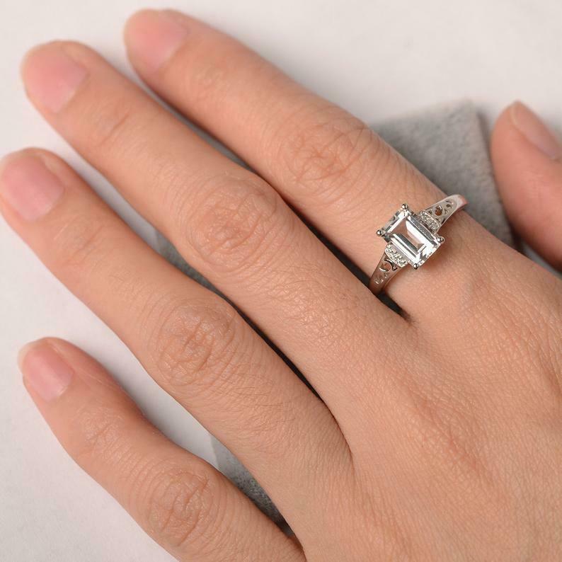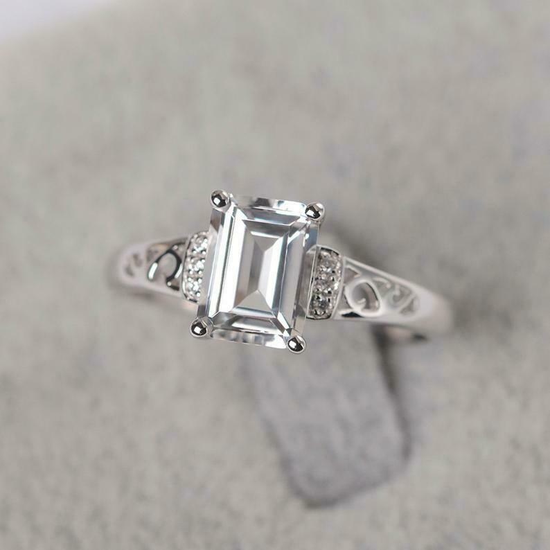 2ct Emerald Cut Diamond Engagement Ring Solitaire Filigree Accent 14k White Gold Over