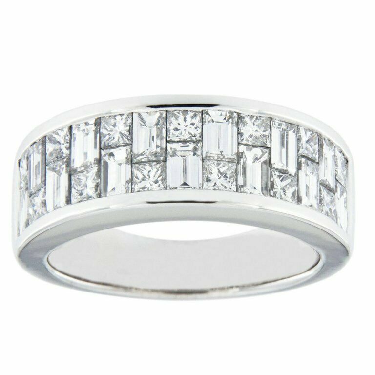 2ct Emerald Princess Cut Diamond Wedding Band Half Eternity 14k White Gold Finish