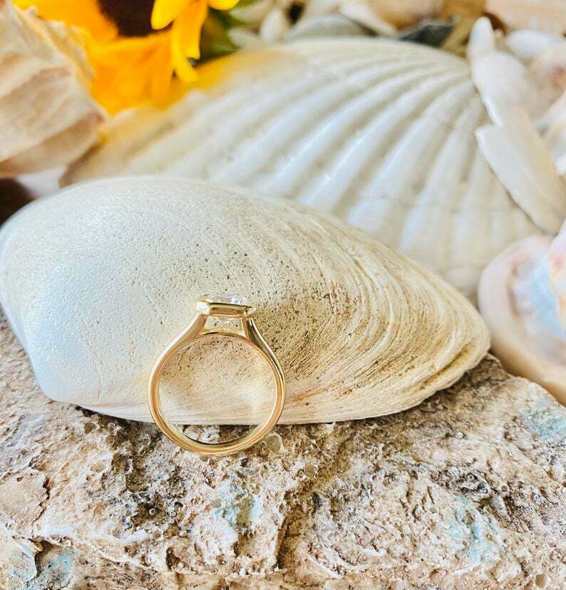2ct Engagement Ring Asscher Cut Diamond Bezel Set Solitaire 14k Yellow Gold Over