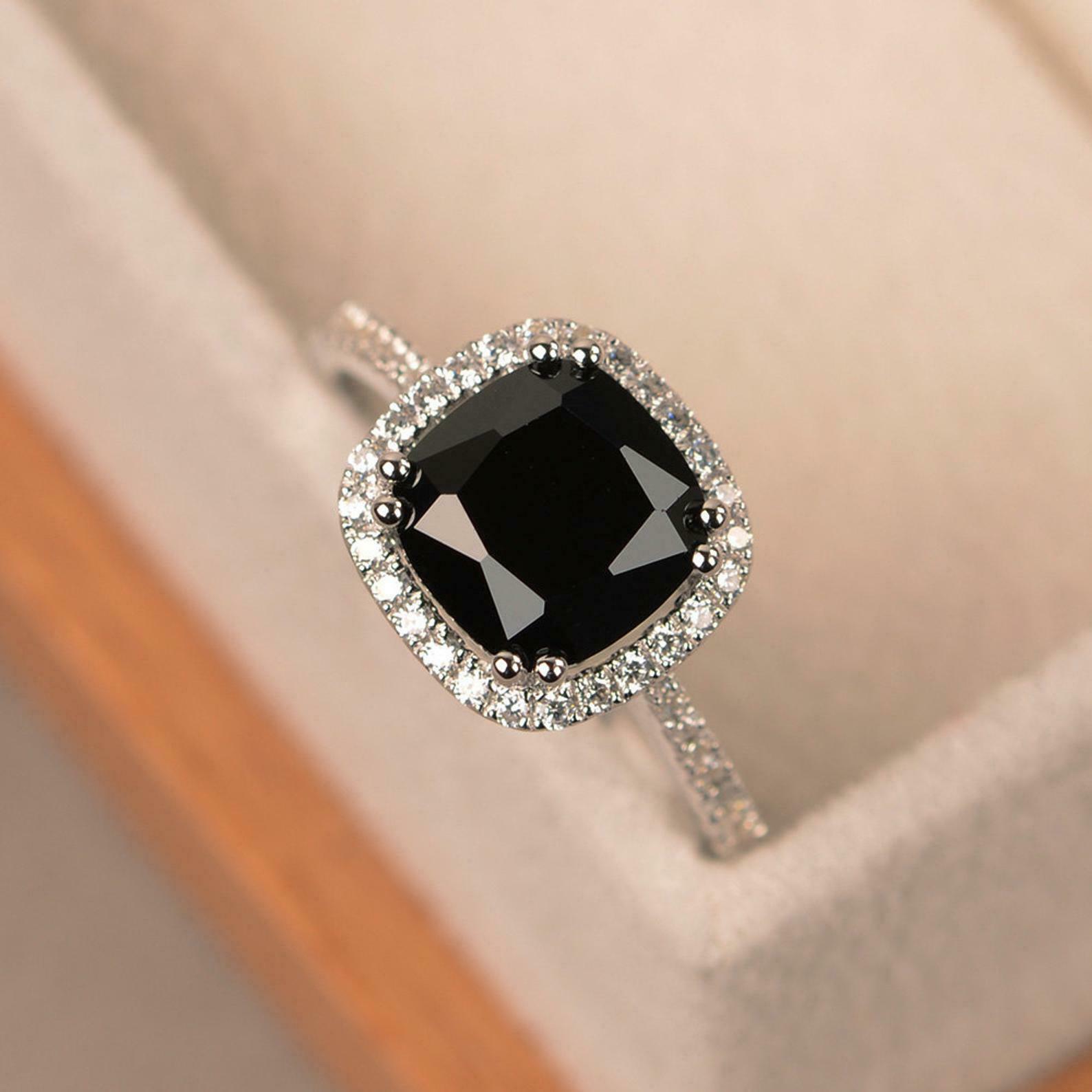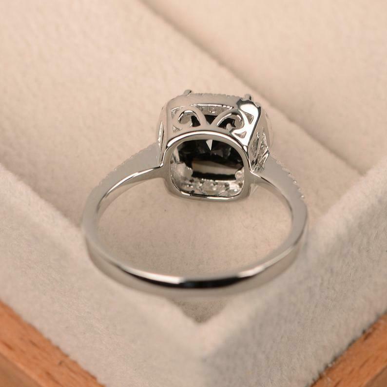 2ct Engagement Ring Cushion Cut Black Diamond Halo Design 14k White Gold Finish