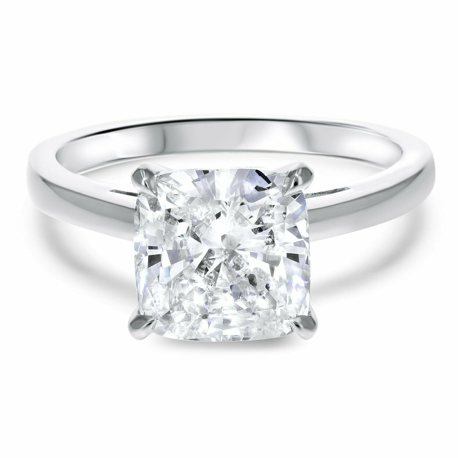 2ct Engagement Ring Cushion Cut Diamond Solitaire Design 14k White Gold Finish