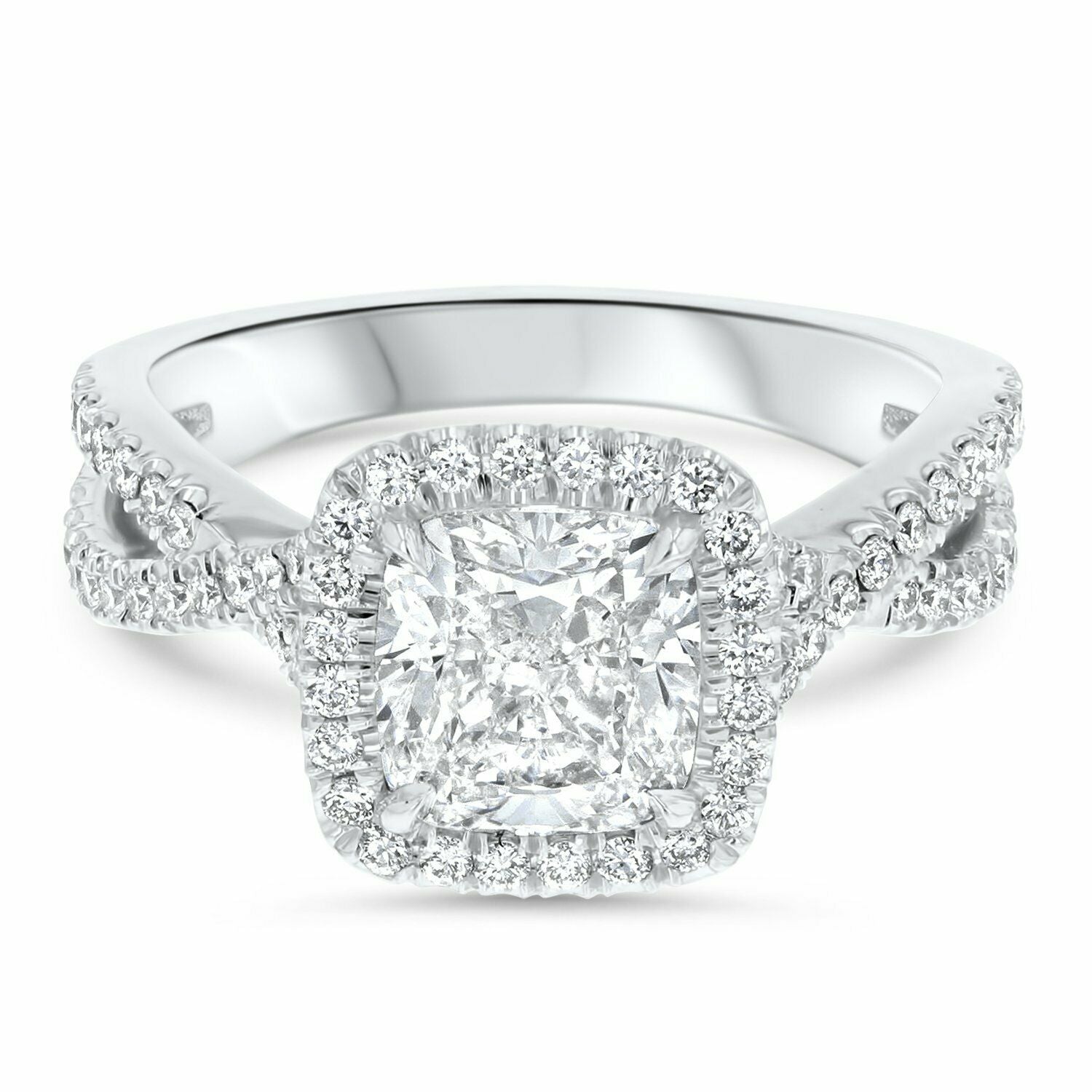 2ct Engagement Ring Cushion Cut Diamond Split Shank Halo 14k White Gold Finish
