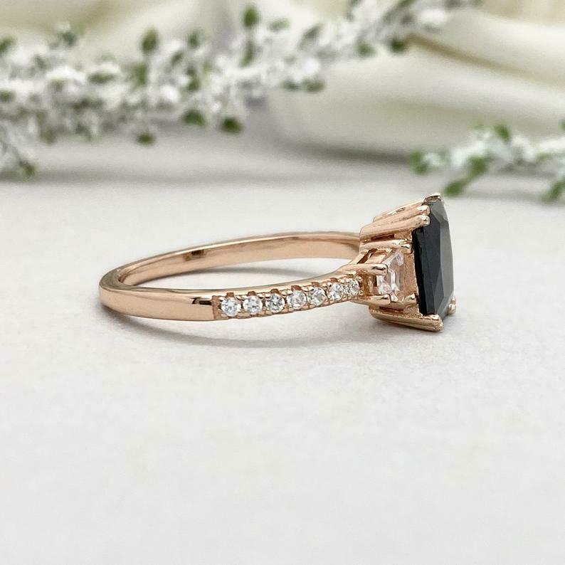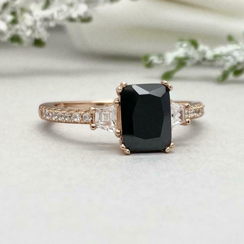 2ct Engagement Ring Emerald Cut Diamond Solitaire with Accent 14k Rose Gold Over
