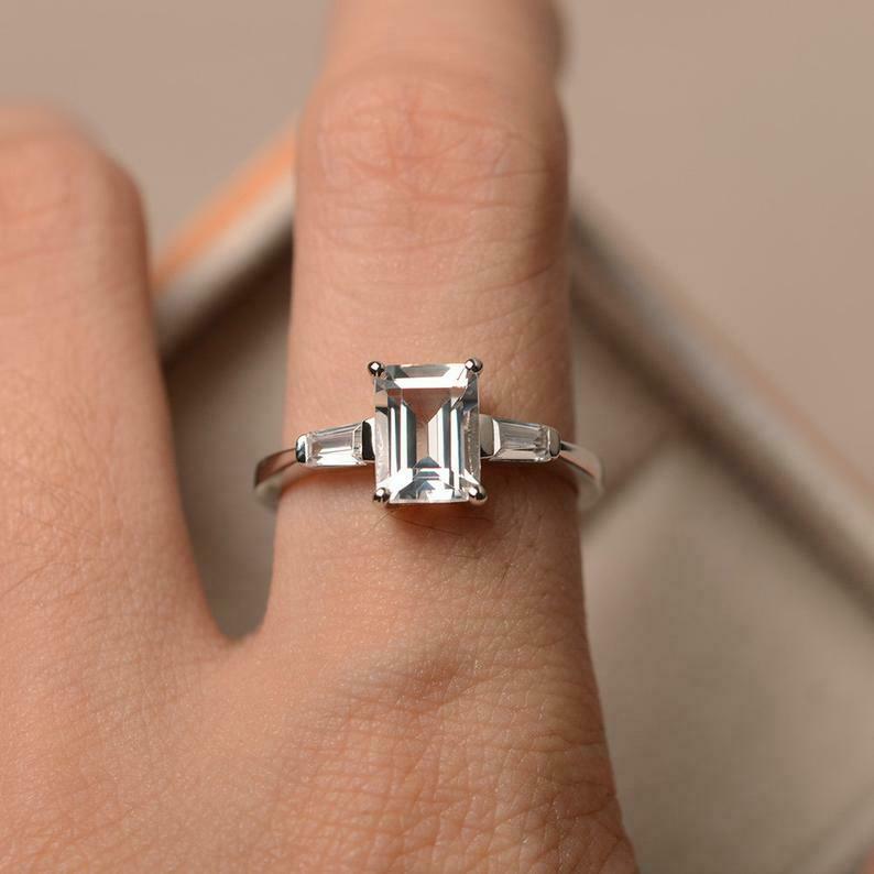 2ct Engagement Ring Emerald Cut Diamond Three Stone Design 14k White Gold Finish