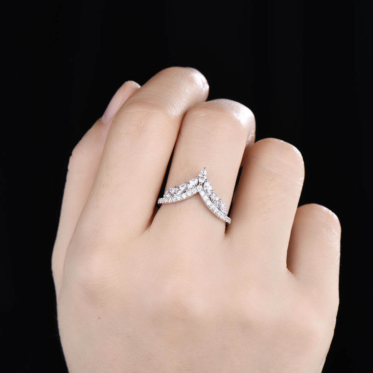 2ct Engagement Ring Marquise Cut Diamond Curved Crown Design 14k White Gold Over