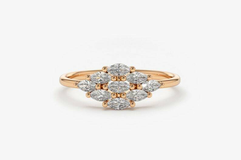 2ct Engagement Ring Marquise Cut Diamond Minimalist Cluster 14k Rose Gold Finish
