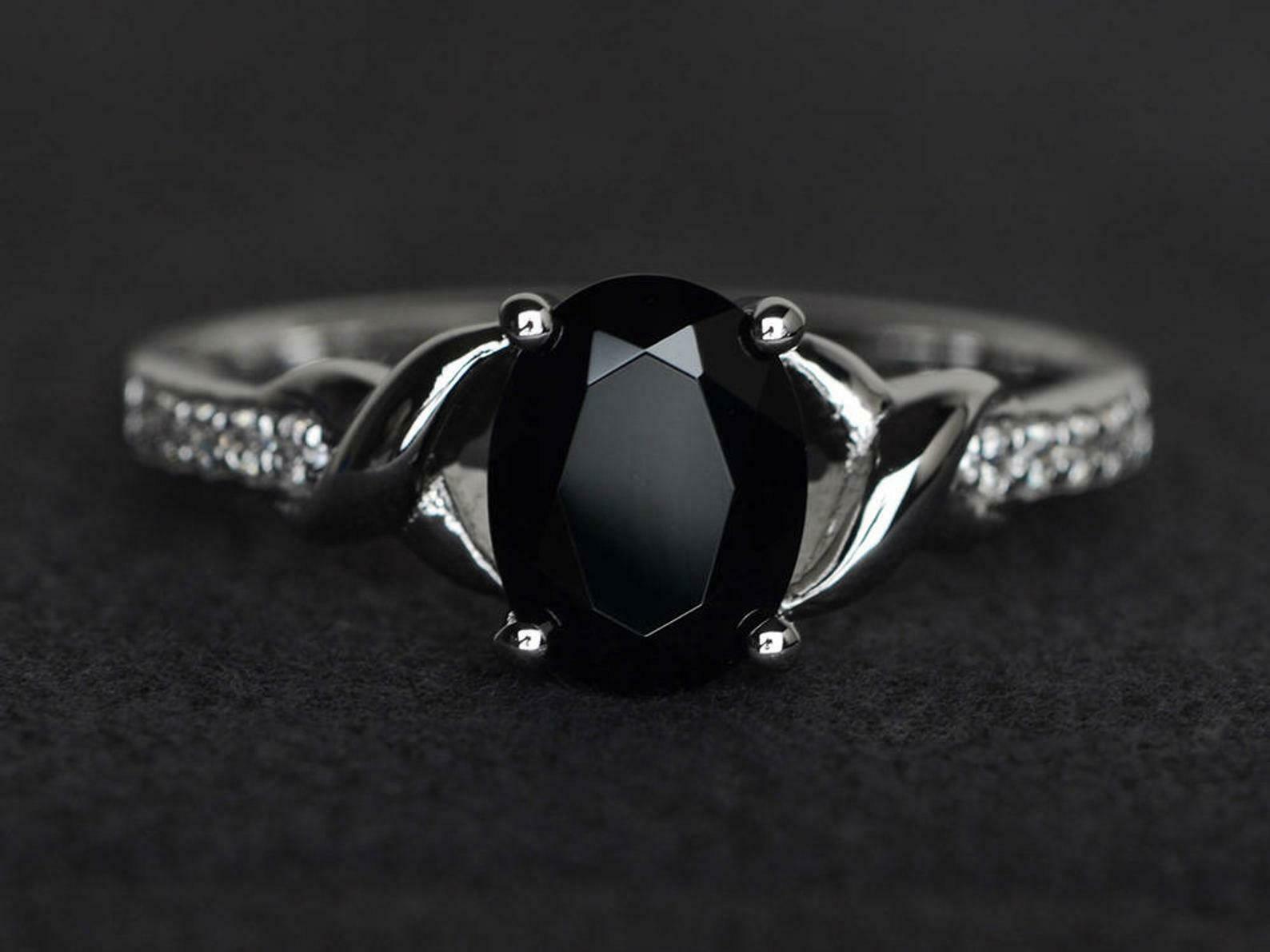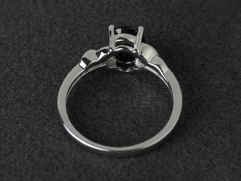 2ct Engagement Ring Oval Cut Black Diamond Twist Shank Solitaire 14k White Gold Finish