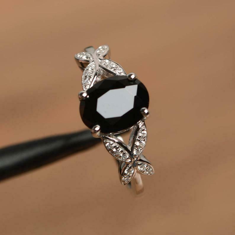 2ct Engagement Ring Oval Cut Black Diamond Butterfly Accent 14k WhiteGold Finish
