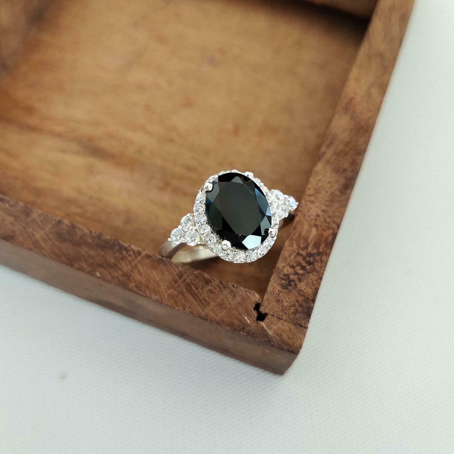 2ct Engagement Ring Oval Cut Black Diamond Halo Design 14k White Gold Finish