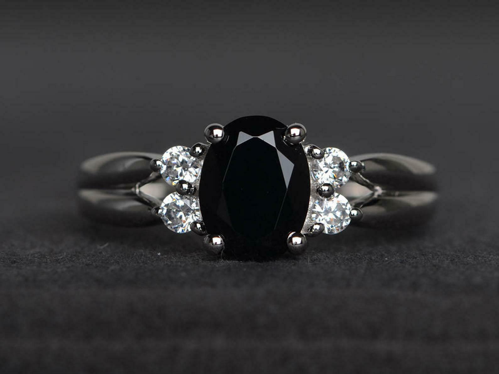 2ct Engagement Ring Oval Cut Black Diamond Stylish Solitaire 14k White Gold Over