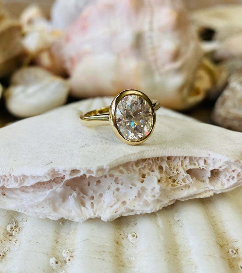 2ct Engagement Ring Oval Cut Diamond Bezel Set Solitaire 14k Yellow Gold Finish