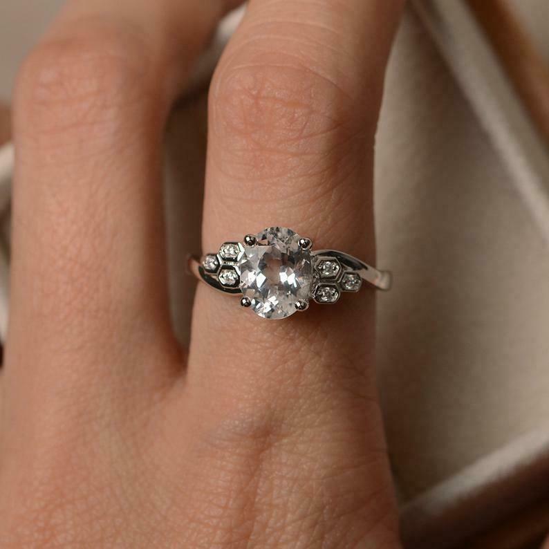 2ct Engagement Ring Oval Cut Diamond Hexagon Design Shank 14k White Gold Finish