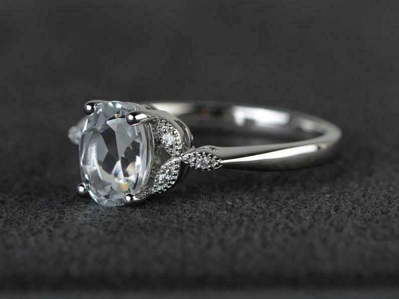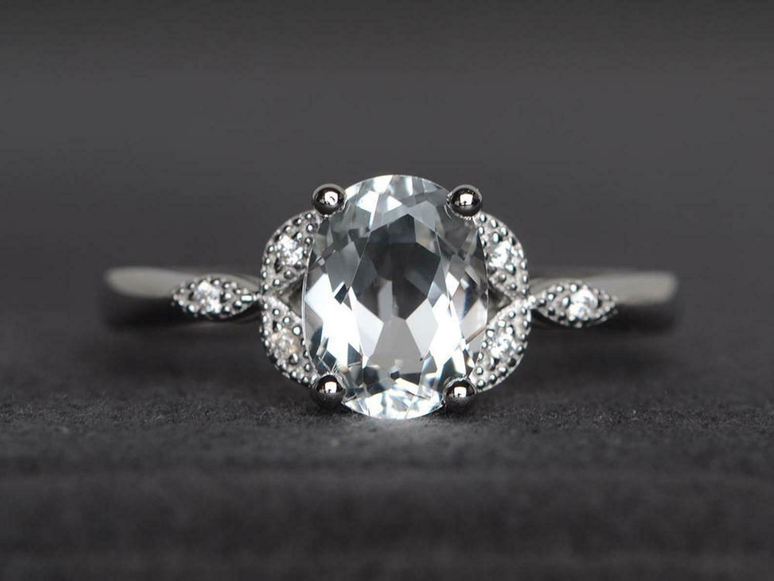 2ct Engagement Ring Oval Cut Diamond Leaf Accent Solitaire 14k White Gold Finish