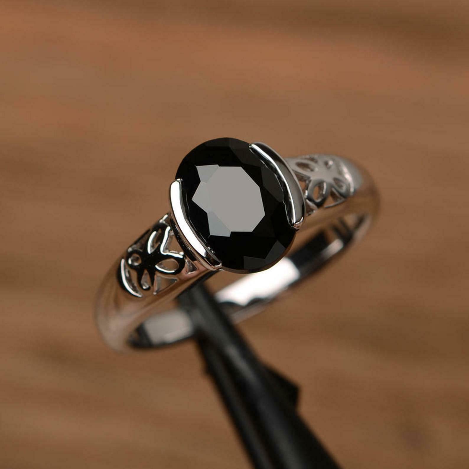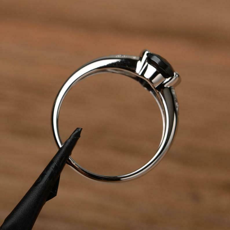 2ct Engagement Ring Oval Cut Black Diamond Open Shank Butterfly 14k White Gold Finish