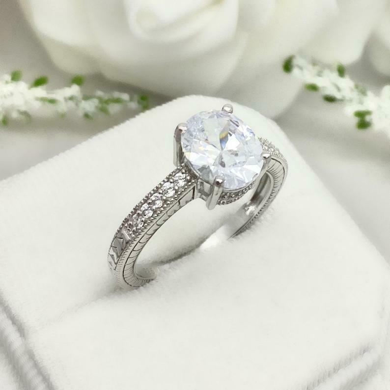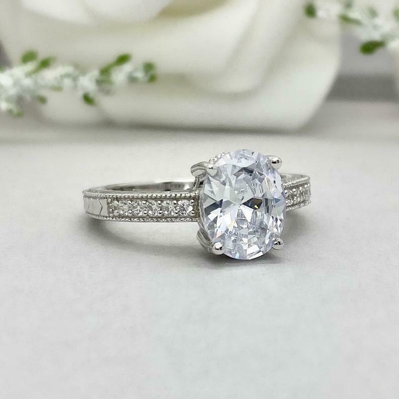 2ct Engagement Ring Oval Cut Diamond Solitaire with Accents 14k WhiteGold Finish