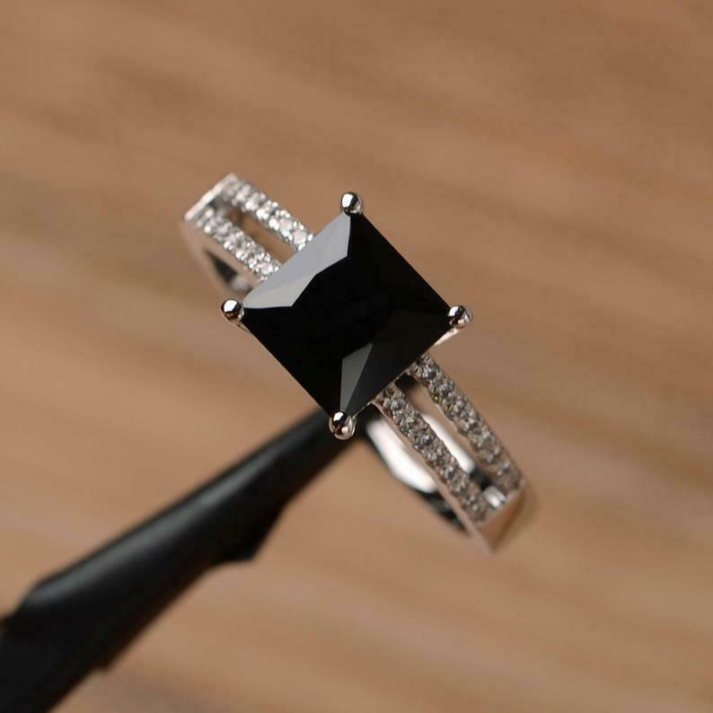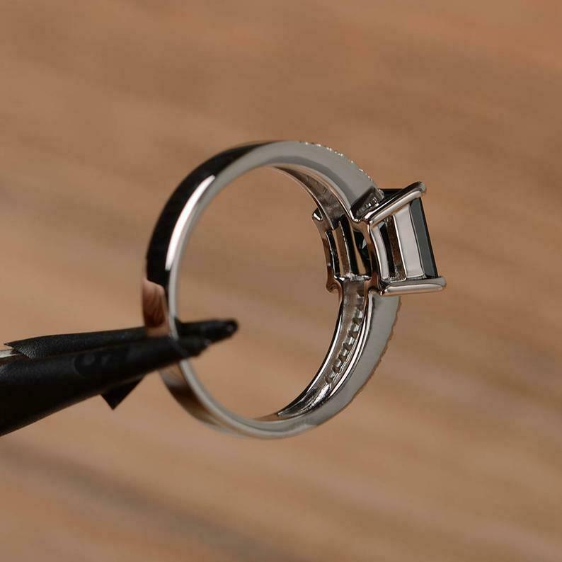 2ct Engagement Ring Princess Cut Black Diamond Split Shank 14k White Gold Finish