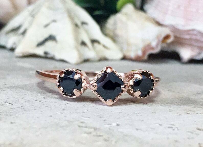2ct Engagement Ring Princess Cut Black Diamond Three Stone 14k Rose Gold Finish
