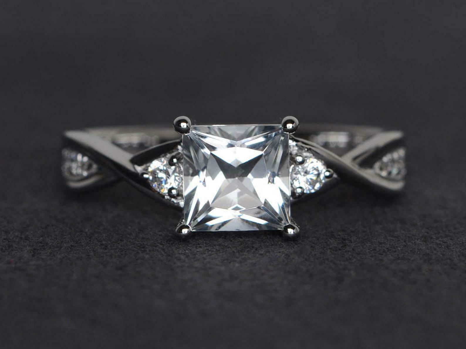 2ct Engagement Ring Princess Cut Diamond Twisted Infinity 14k White Gold Finish