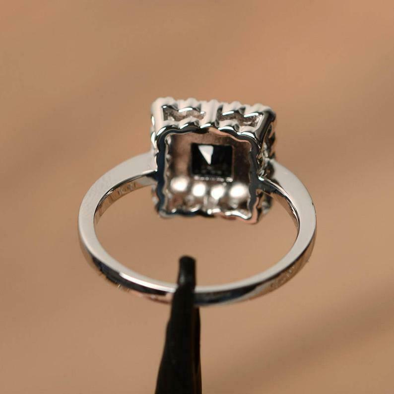 2ct Engagement Ring Princess Diamond Milgrain Halo Solitaire 14k White Gold Over