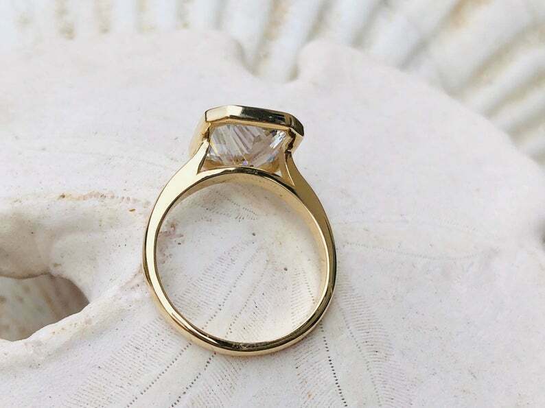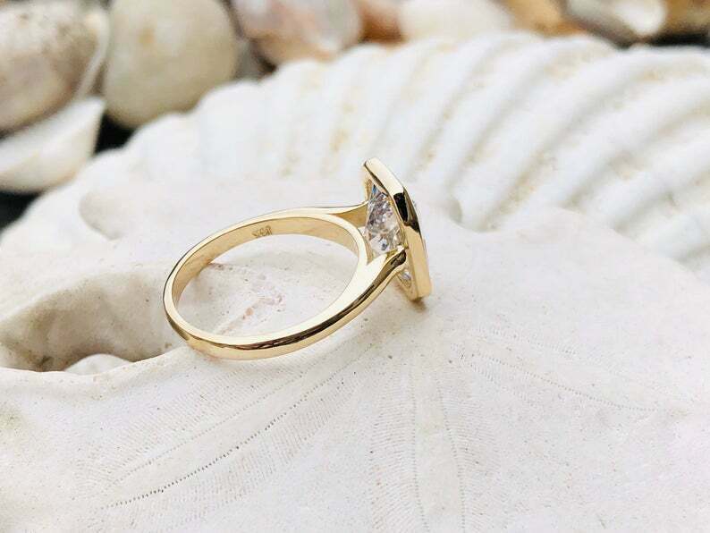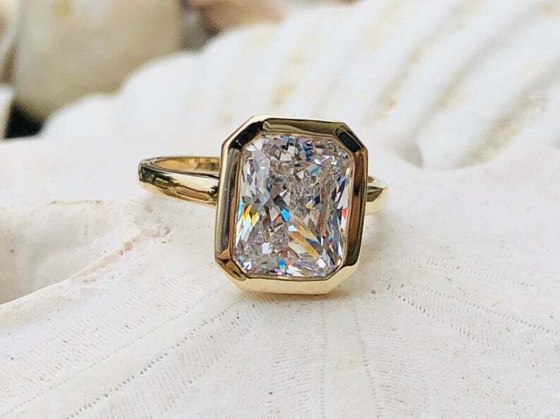 2ct Engagement Ring Radiant Cut Diamond Bezel Set Solitaire 14k Yellow Gold Over