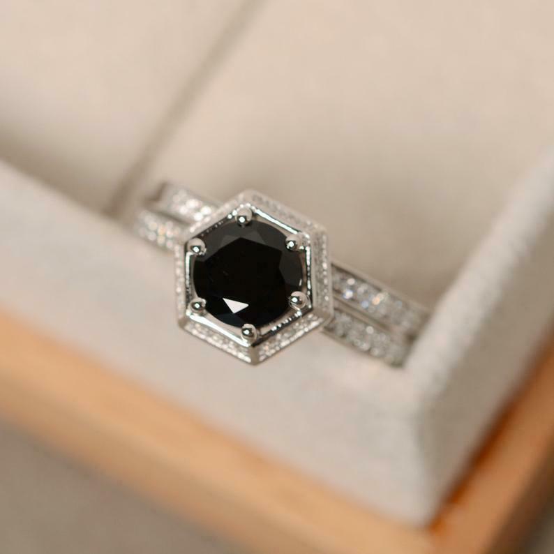 2ct Engagement Ring Round Cut Black Diamond Bridal Set Halo 14k White Gold Finish