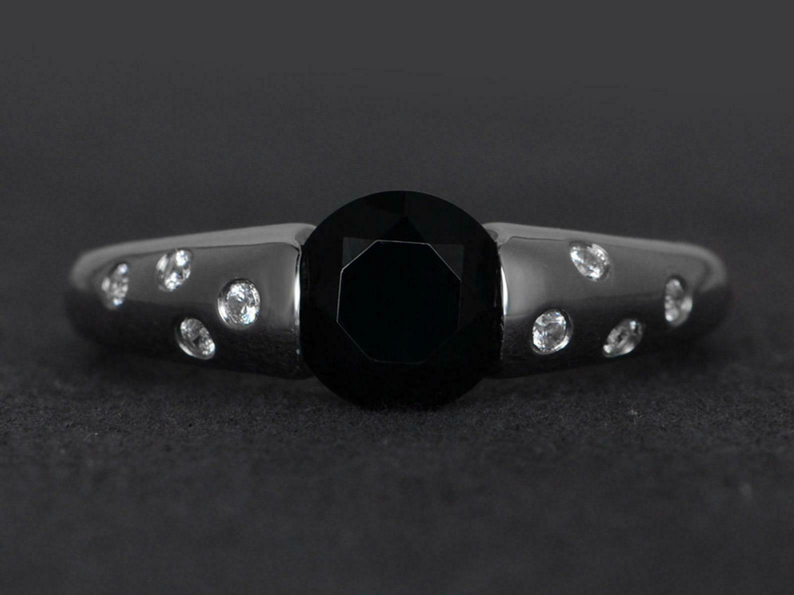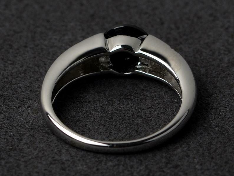 2ct Engagement Ring Round Cut Black Diamond Flush Set Shank 14k White Gold Finish