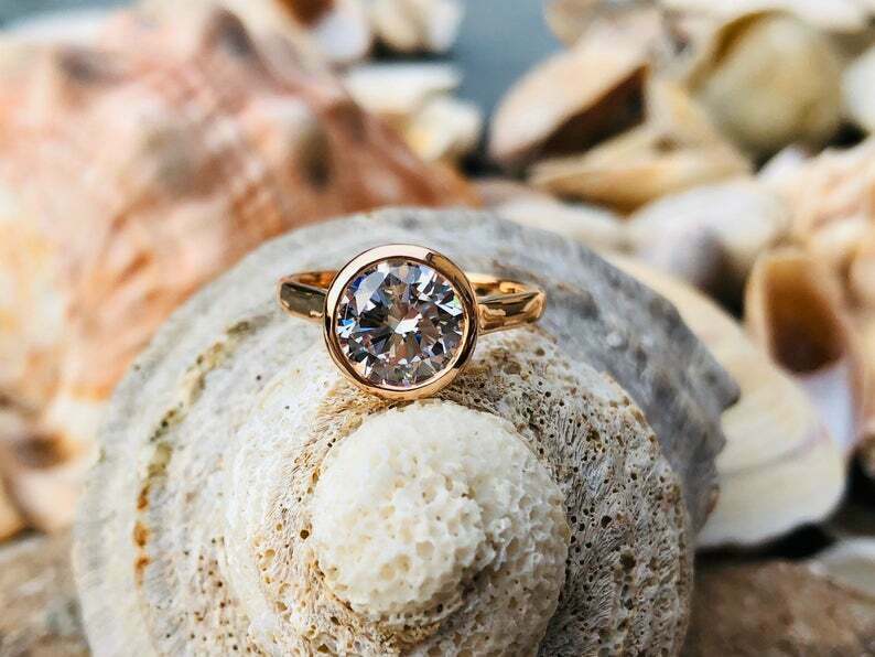 2ct Engagement Ring Round Cut Diamond Bezel Set Solitaire 14k Rose Gold Finish