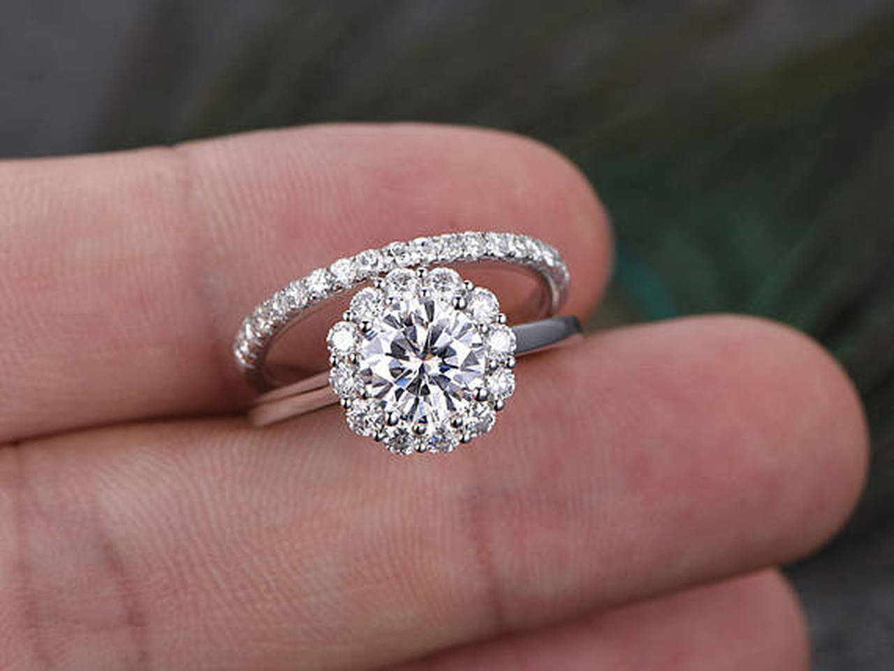2ct Engagement Ring Round Cut Diamond Bridal Set Halo Design 14k White Gold Over