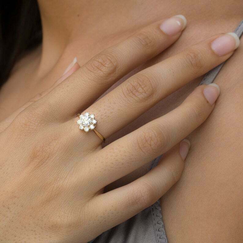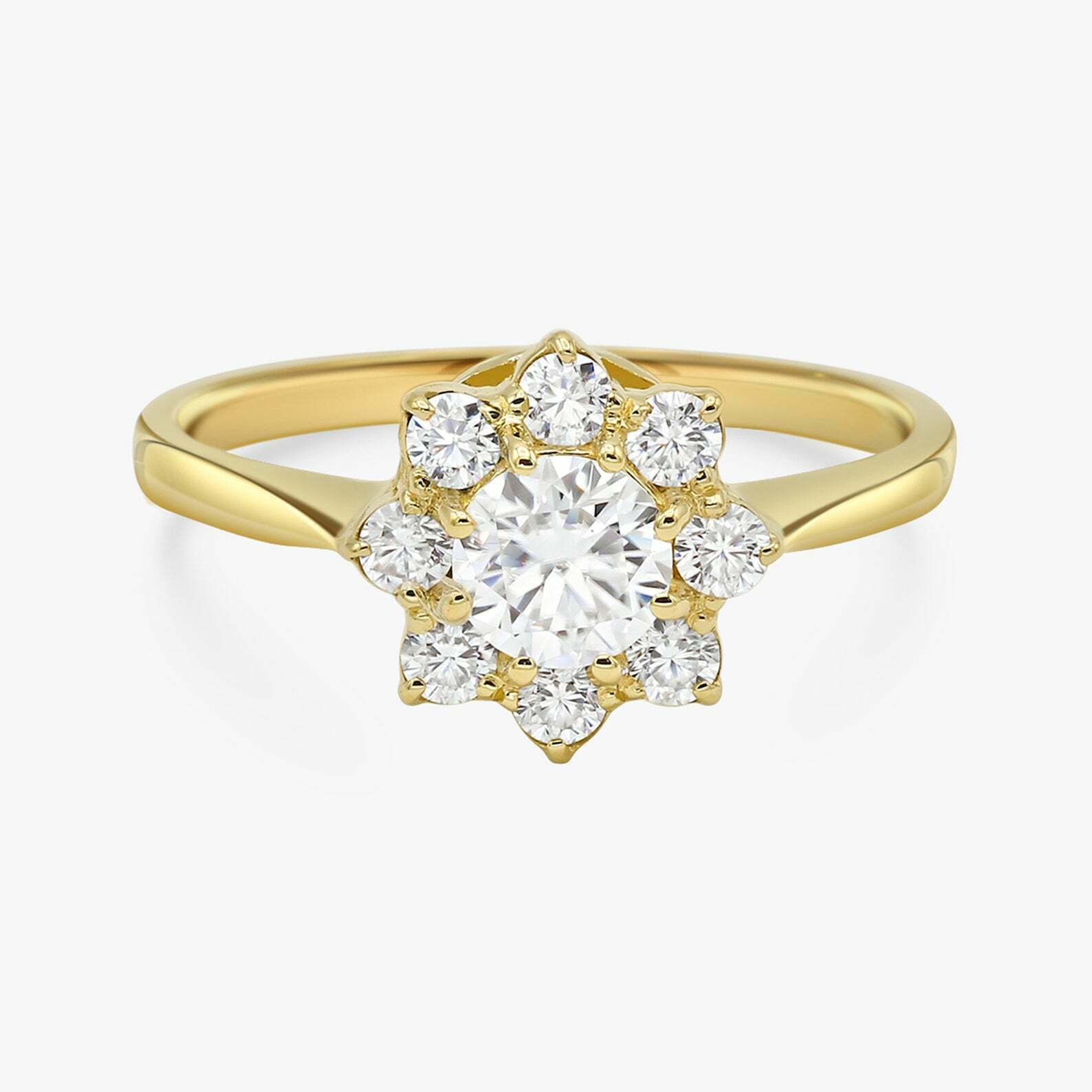 2ct Engagement Ring Round Cut Diamond Halo Floral Promise 14k Yellow Gold Finish
